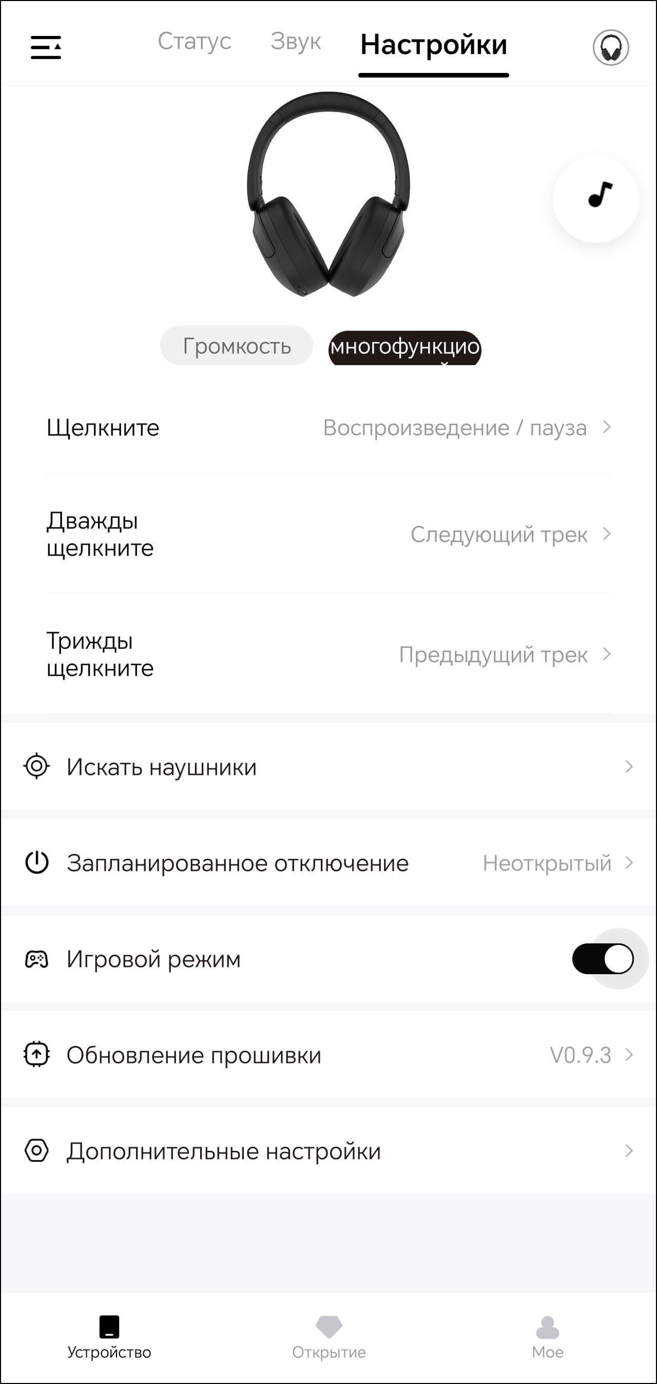 Также из приложения можно включить игровой режим, проверить обновление прошивки, сменить отображаемое название устройства, сбросить настройки.