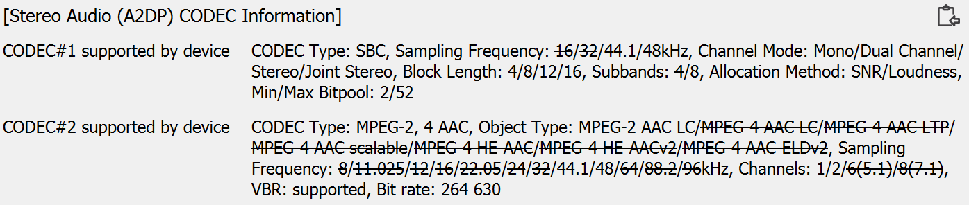 При этом в прошлой модели максимум параметра Bitpool у SBC и битрейт AAC были серьезно занижены, в данном же случае их значения позволят кодекам работать на максимуме своих возможностей — еще один небольшой, но шаг вперед.