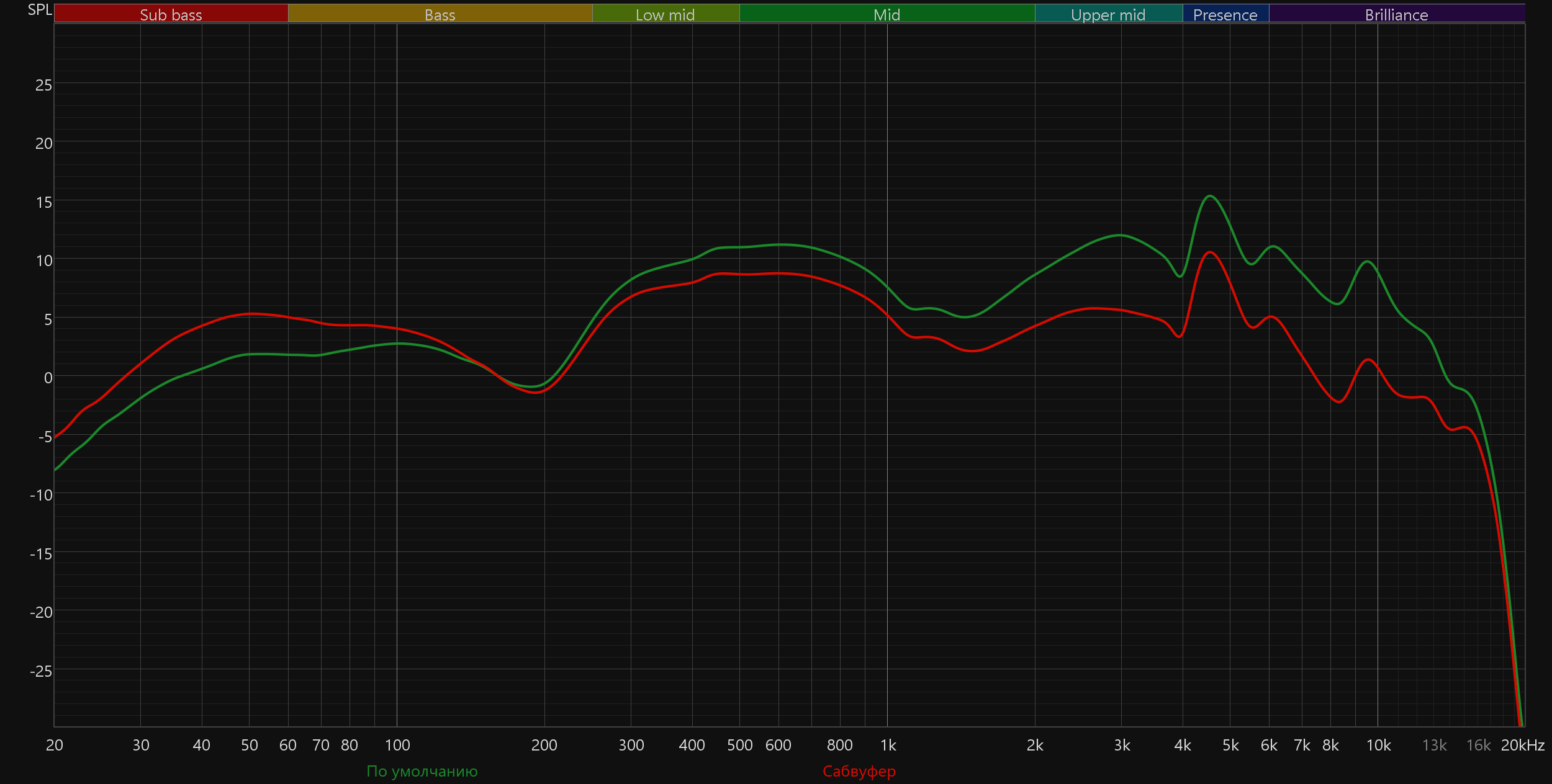 В таком виде все особенности звучания видны как на ладони: тут и звучащий откуда-то с задворок гулкий бас, и непомерно выпяченная вперед нижняя середина, и подаваемая одновременно «мутно» и резко верхняя часть диапазона.