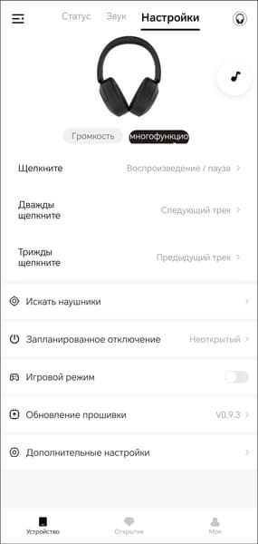 Для настройки гарнитуры служит специализированное ПО с по-прежнему невысоким рейтингом в Google Play, плохим переводом на русский и «кривой» версткой. И вроде бы всё работает, но как-то не очень корректно и стабильно. А чем дороже становятся полноразмерные наушники QCY, тем больше это раздражает. Тем не менее, воспользоваться приложением придется — множество важных функций без него будет недоступно.