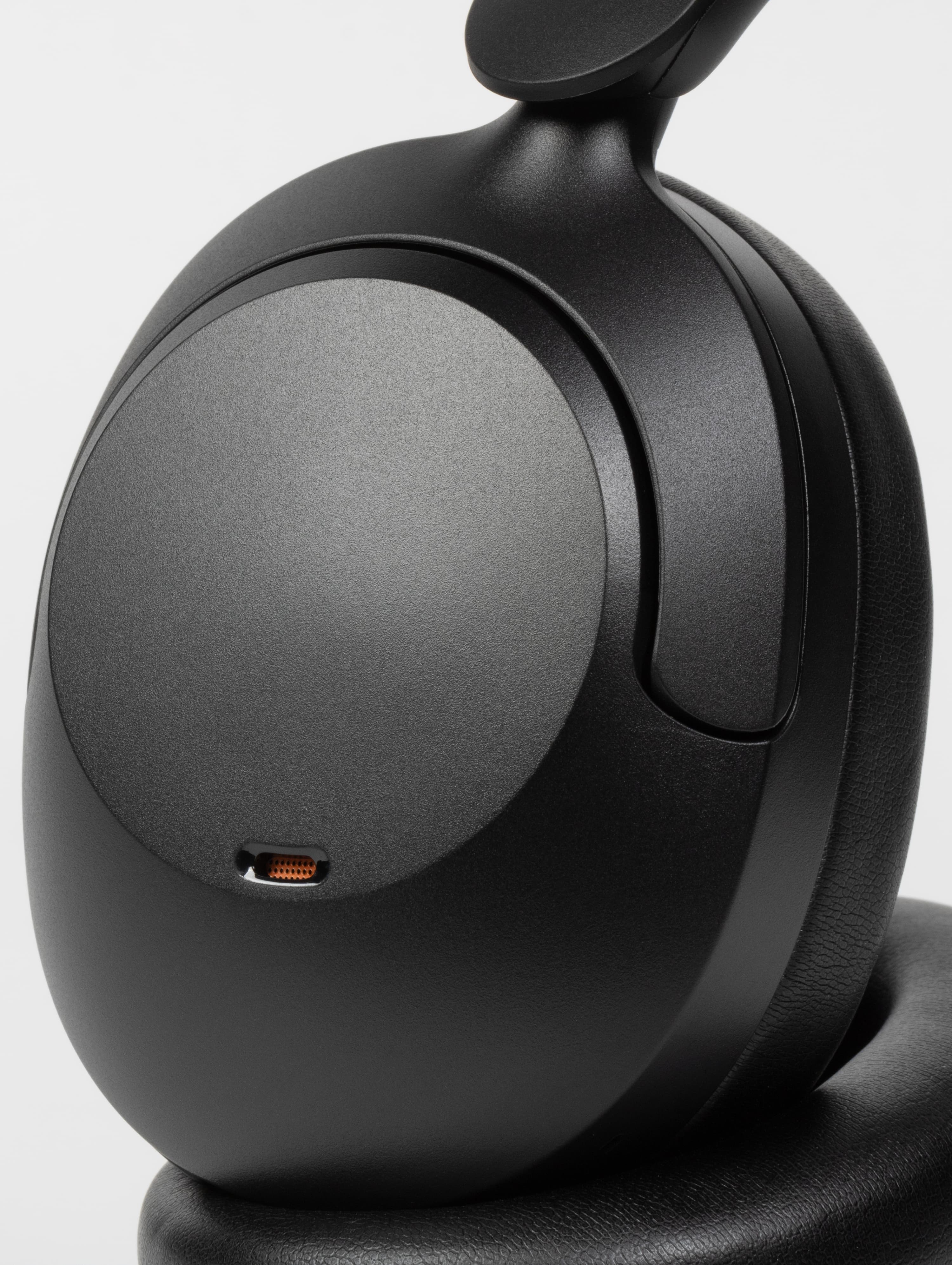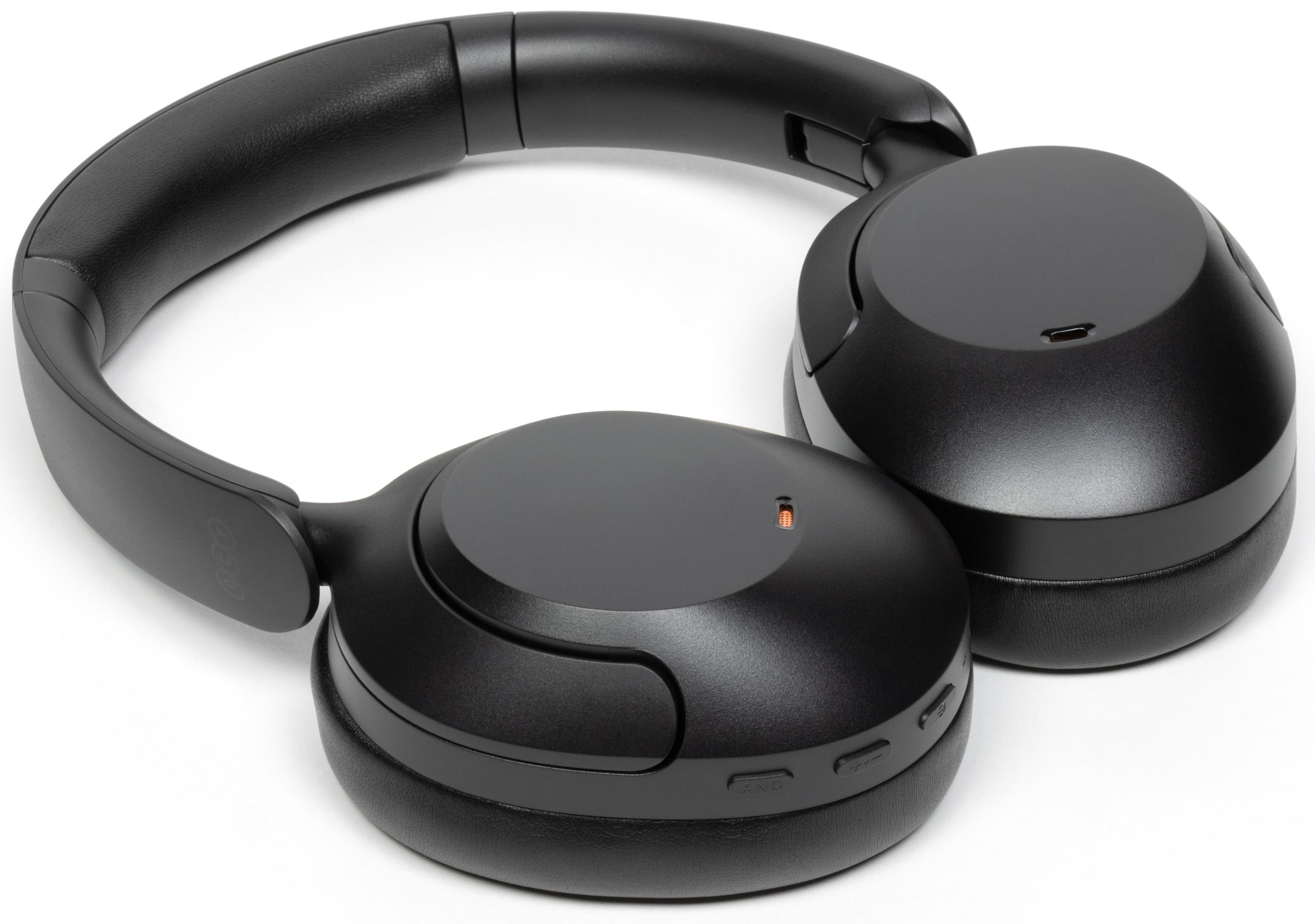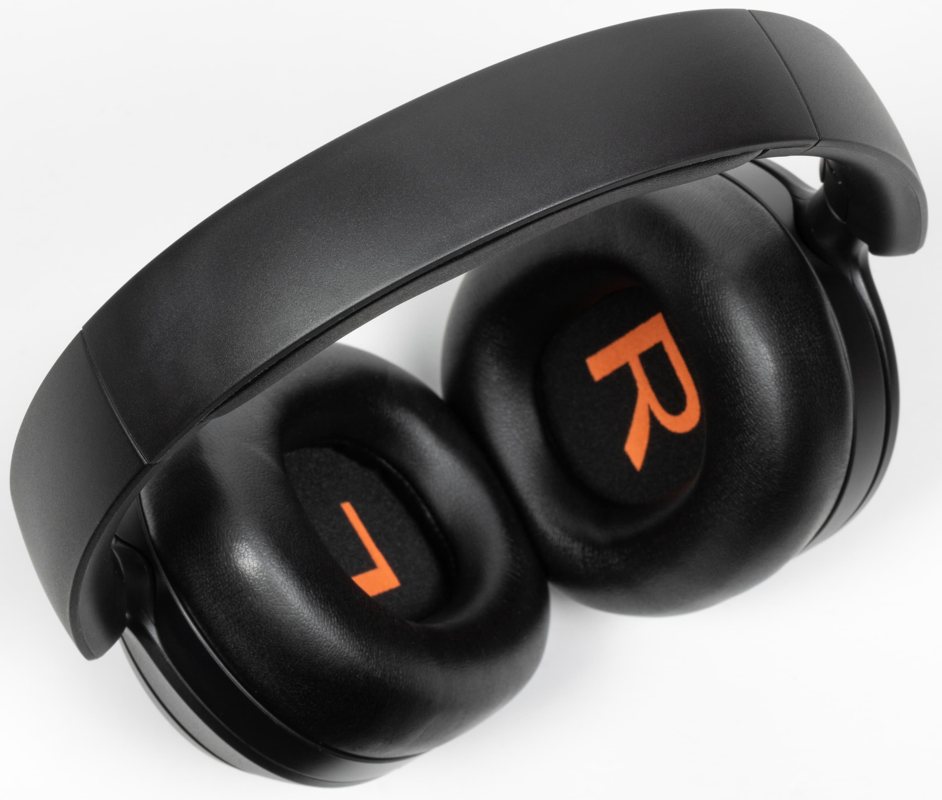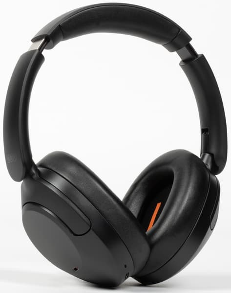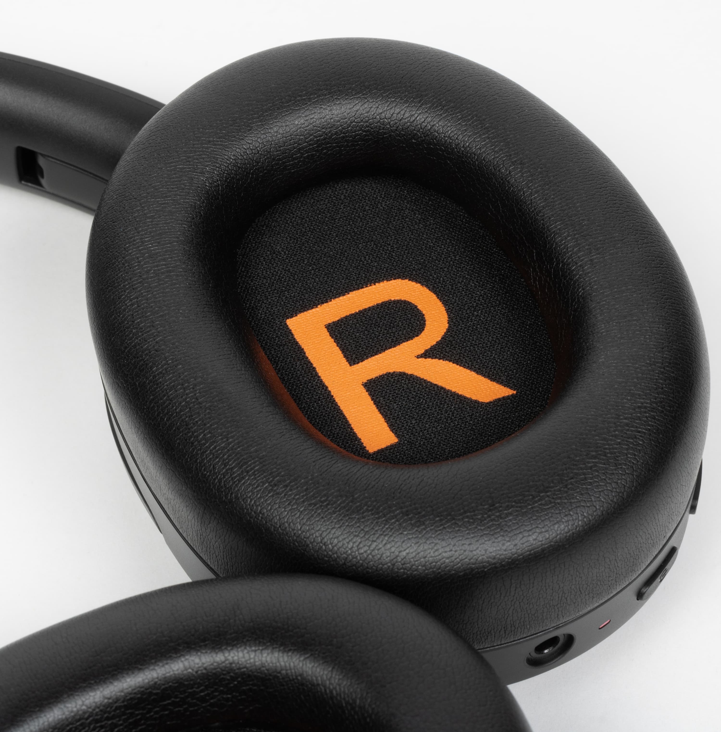 На внешней стороне чашек находятся отверстия микрофонов шумоподавления, закрытые изнутри оранжевой сеткой, что делает их чем-то вроде декоративного элемента.