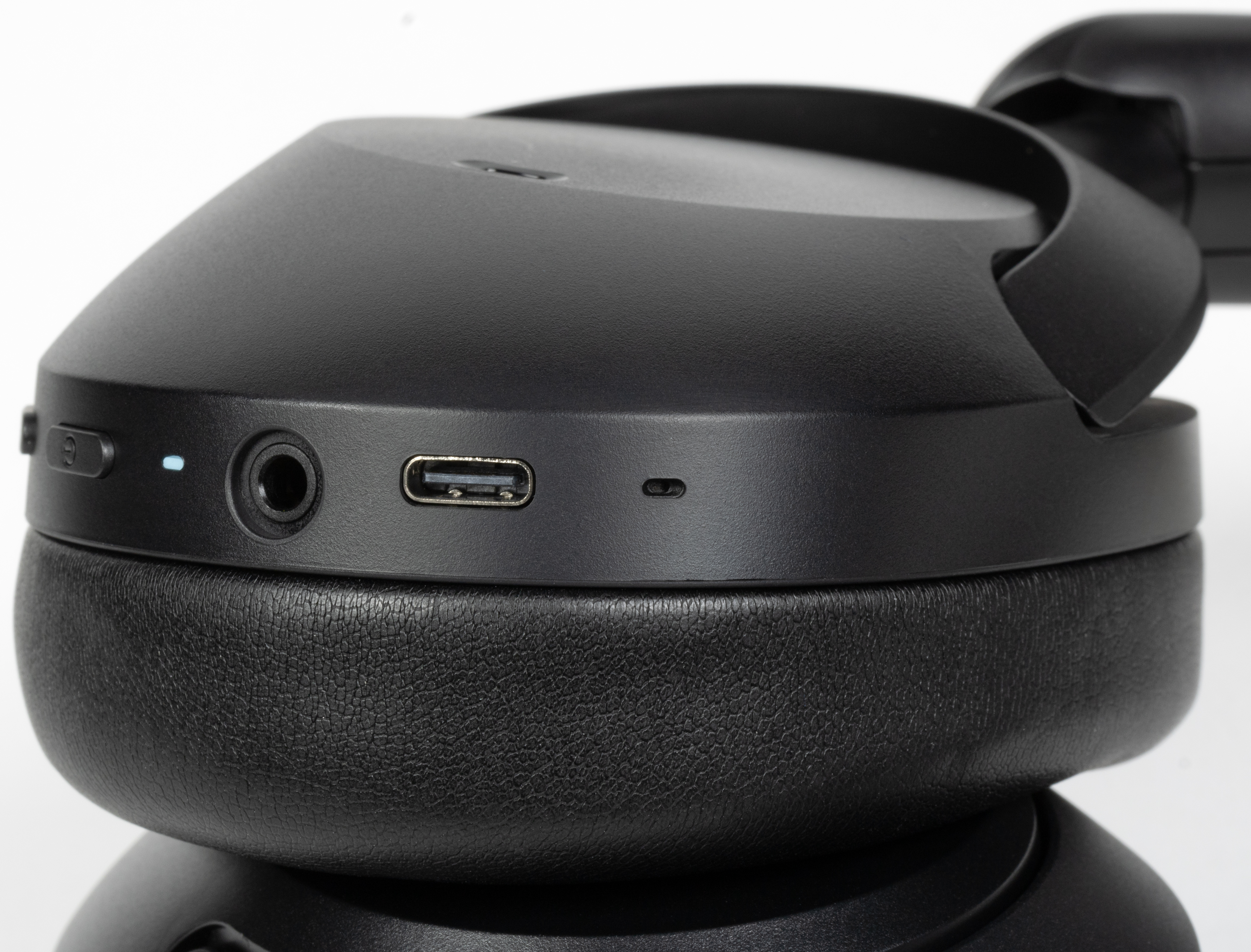 Органы управления и разъемы для подключения наушников размещены в нижней части правой чашки. Там же находится маленькое отверстие микрофона для голосовой связи. Внешняя ее поверхность является сенсорной, но в дизайне это никак не отражено.