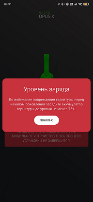 …и ничего не выходит, так как уровень заряда аккумулятора слишком низок. Ставим наушники на зарядку, через час пробуем еще раз — все проходит отлично. В процессе устройство один раз перезагружается.