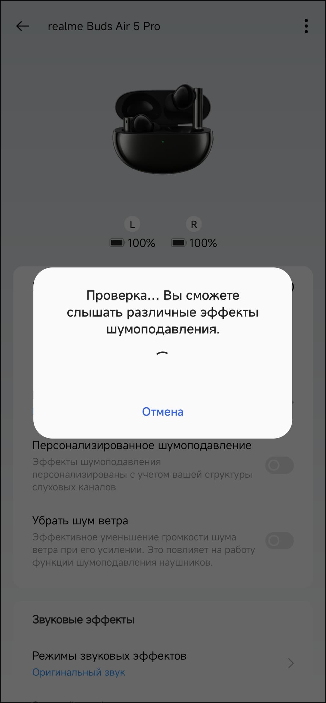 А еще Realme анонсировали работу активного шумоподавления в расширенном диапазоне. Честно говоря, на слух это не очень-то и заметно — максимум эффективности по-прежнему приходится на НЧ-диапазон. С шумом двигателя или гулом толпы система справляется намного лучше, чем с криком ребенка на соседнем кресле в самолете — тут все как обычно. Но вот в плане именно качества шумоподавления сделан солидный рывок вперед — производитель анонсировал подавление шумов аж на 50 дБ — больше, чем у кого-либо из конкурентов.