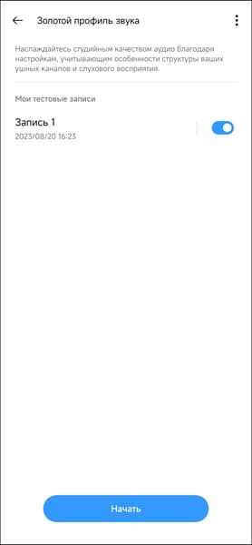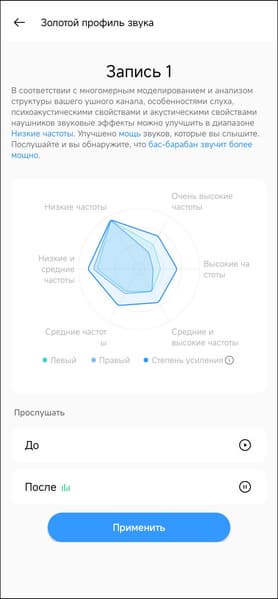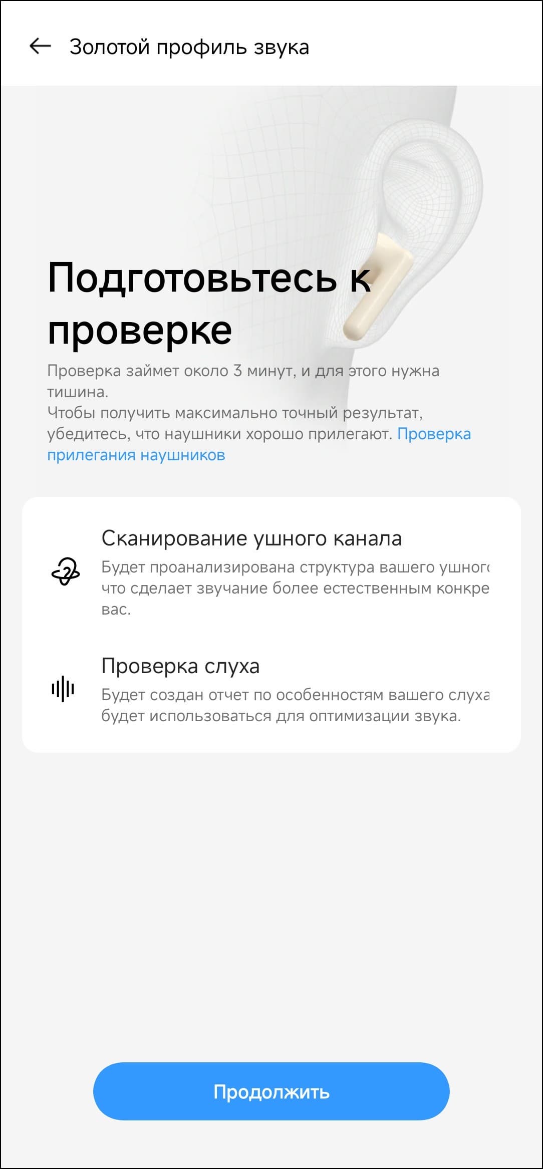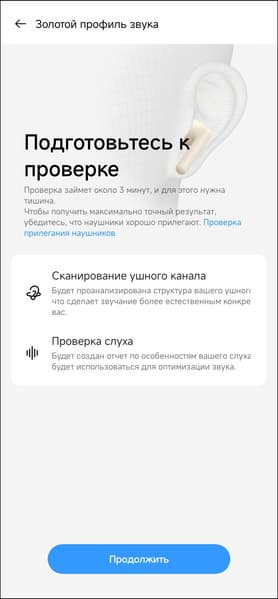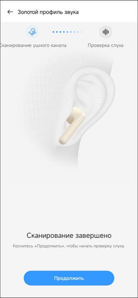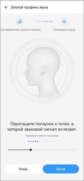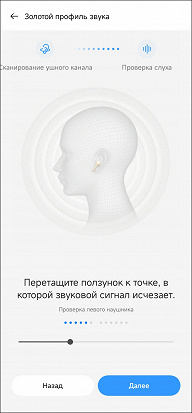 Вновь реализована возможность настройки «золотого профиля звука». Очень полезная опция, на которую действительно стоит потратить 5 минут. В течение этого времени пользователю предлагается прослушать ряд сигналов разной частоты и уменьшать их громкость до тех пор, пока он не перестанет быть слышимым.