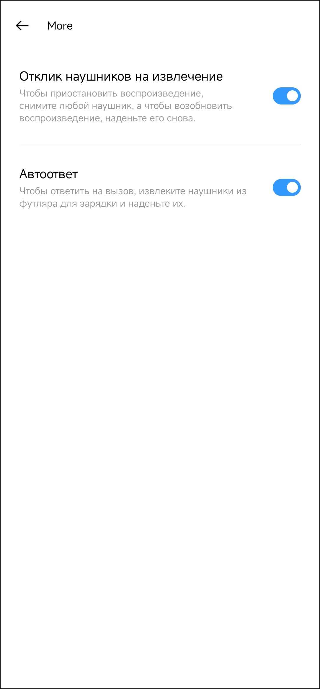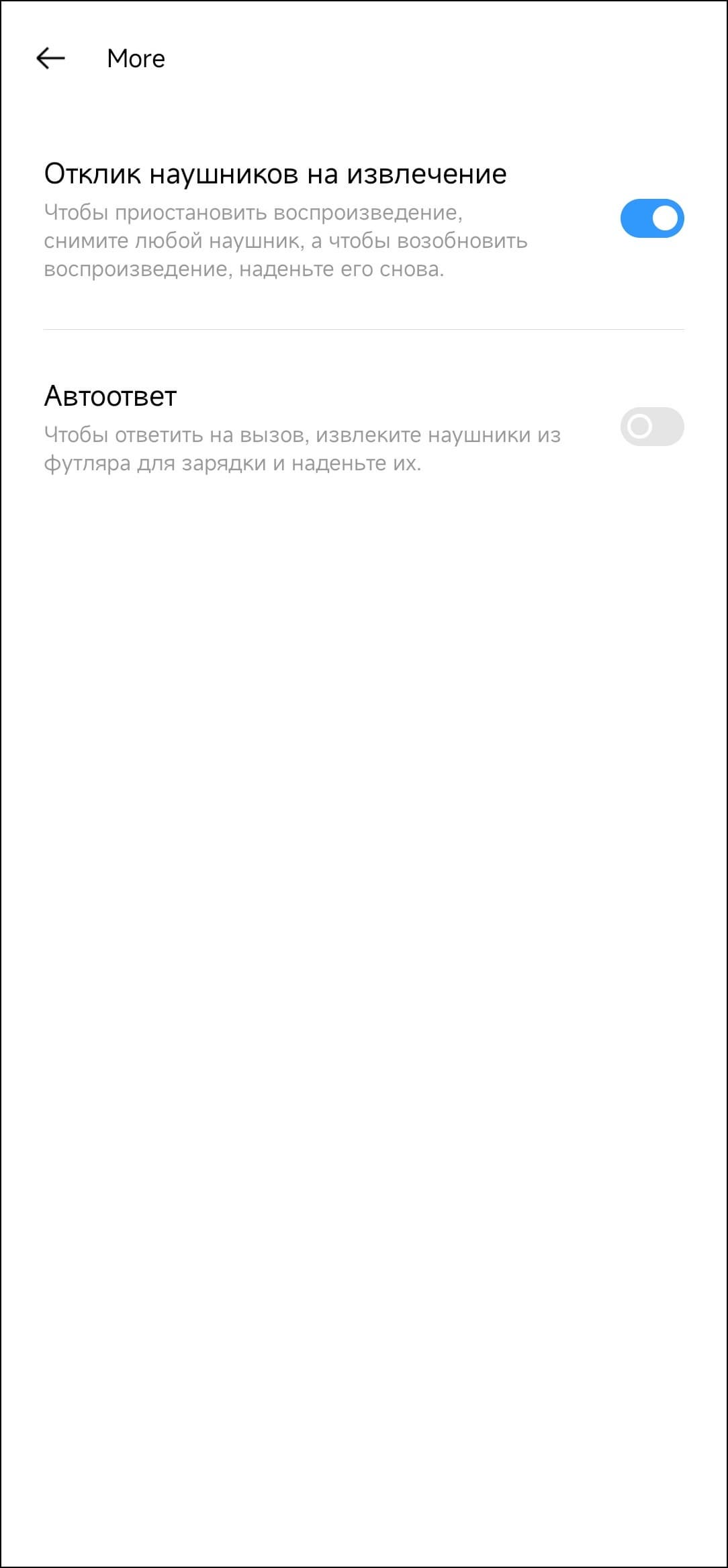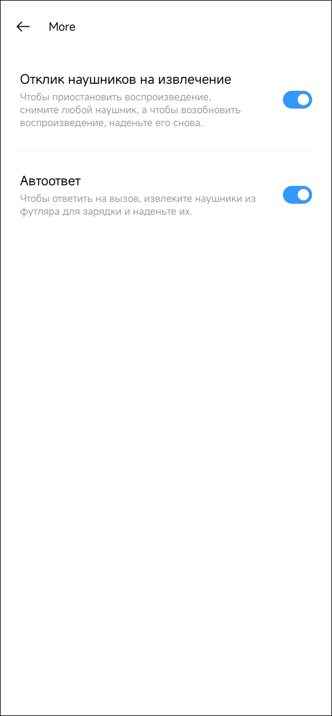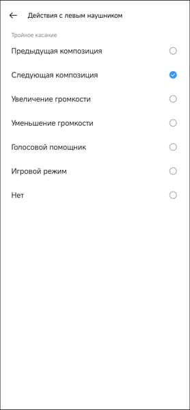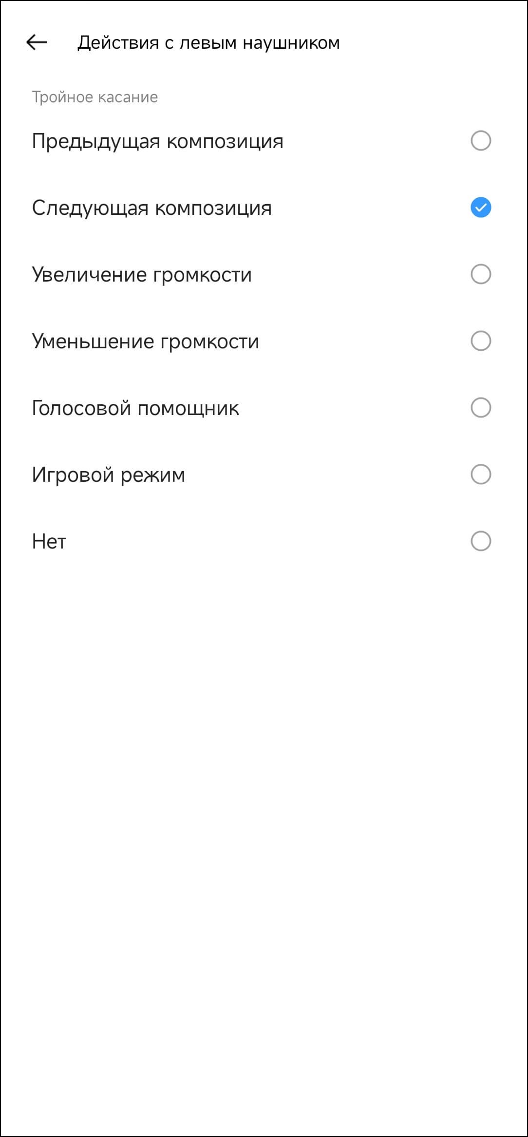 Все остальные действия настраиваются в Realme Link, причем настройки левого и правого наушника могут отличаться. Управление громкостью поддерживается, но с учетом заблокированного одинарного касания придется делать нелегкий выбор между ней и возможностью пролистывать треки.