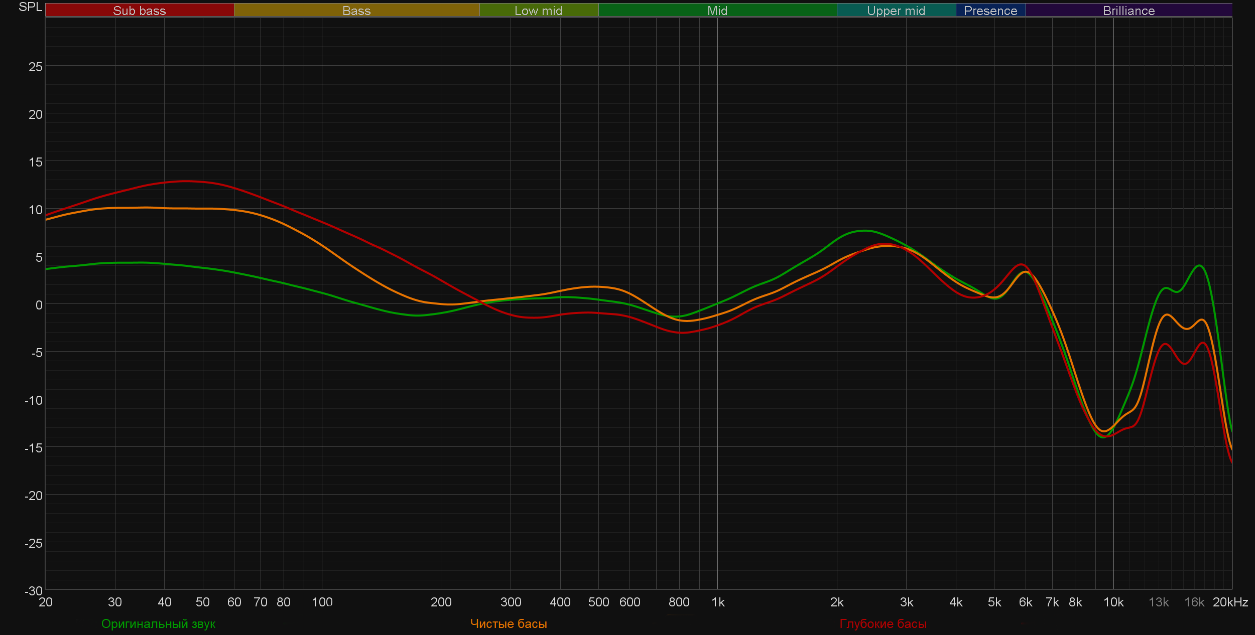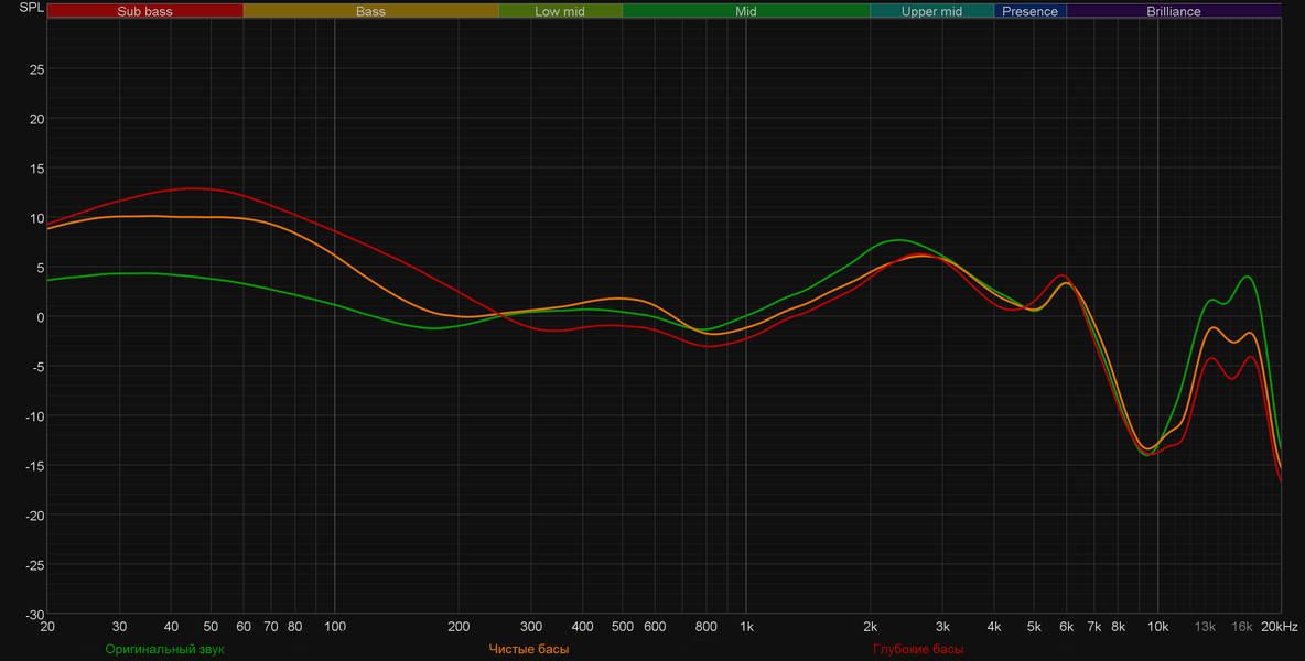 Режимы «Чистые басы» и «Глубокие басы» работают предсказуемым образом: сильно и очень сильно выделяют и без того форсированные низкие частоты.