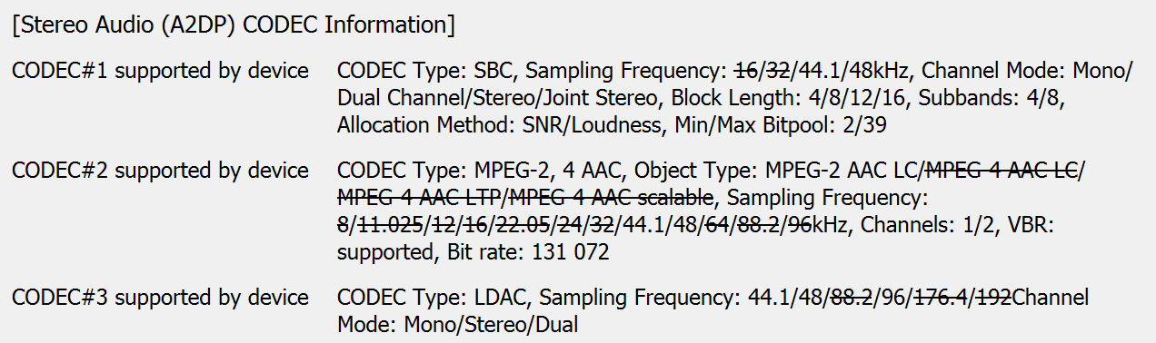 А вот что понять сложно, так это почему максимум параметра Bitpool у потенциально очень неплохого кодека SBC выставлен на уровне 39, тогда как рекомендованный профиль High Quality подразумевает значение 51. Битрейт AAC тоже «зарезан» на уровне 131 Кбит/с. Очень может быть, что это сделано для того, чтобы пользователь ярче почувствовал переход на «кодек высокой четкости LDAC». Мягко говоря, спорное решение.