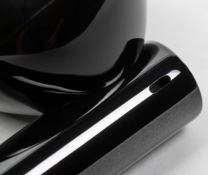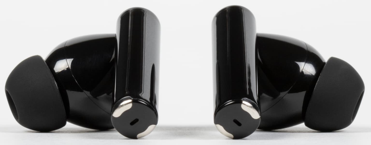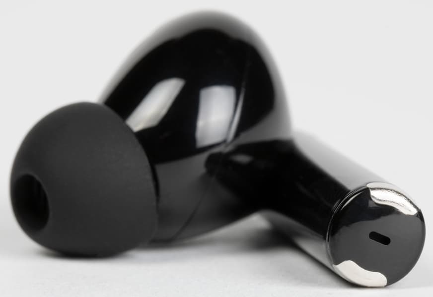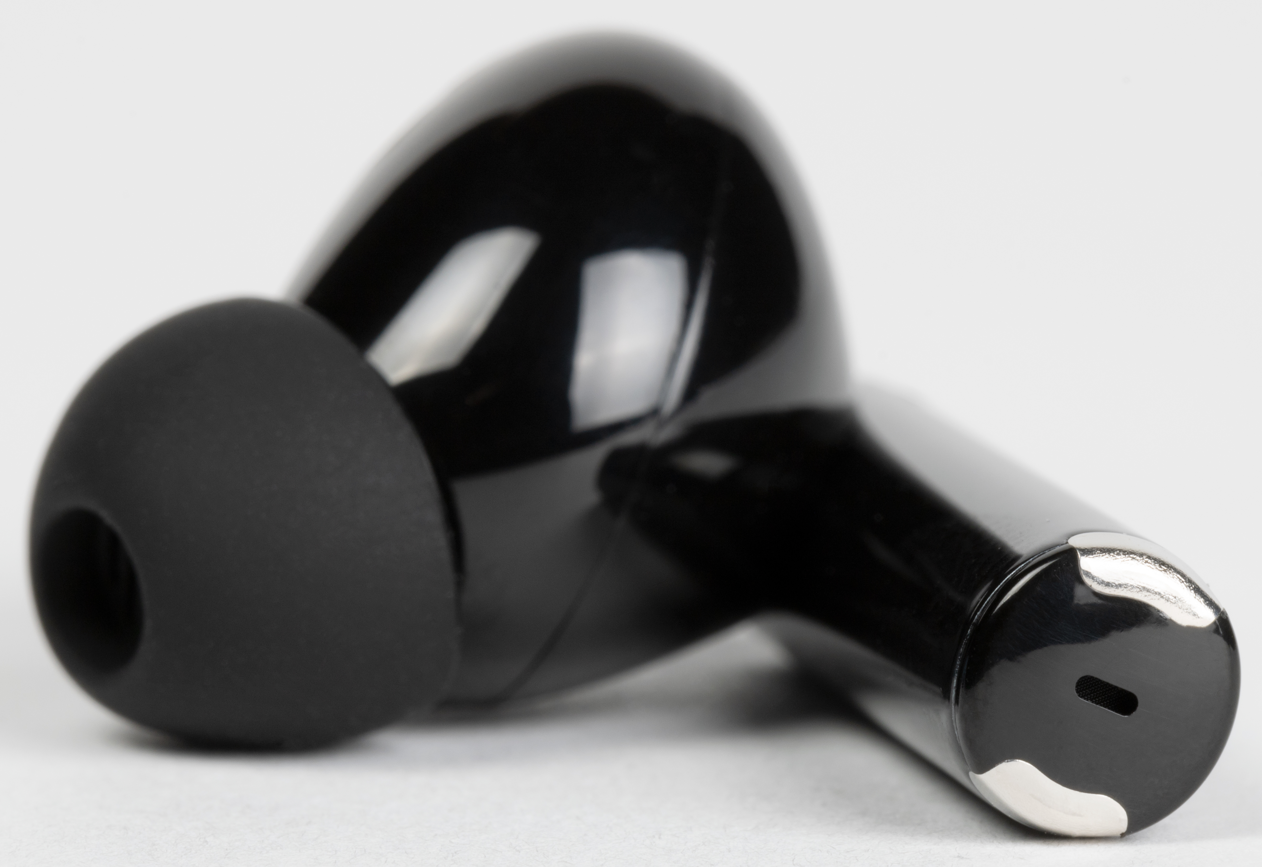 Сверху на внешней части «ножки» — для режима «звуковой прозрачности» и активного шумоподавления. Очень вероятно, что там же расположено и компенсационное отверстие, служащее для сброса лишнего давления во время работы динамического драйвера.
