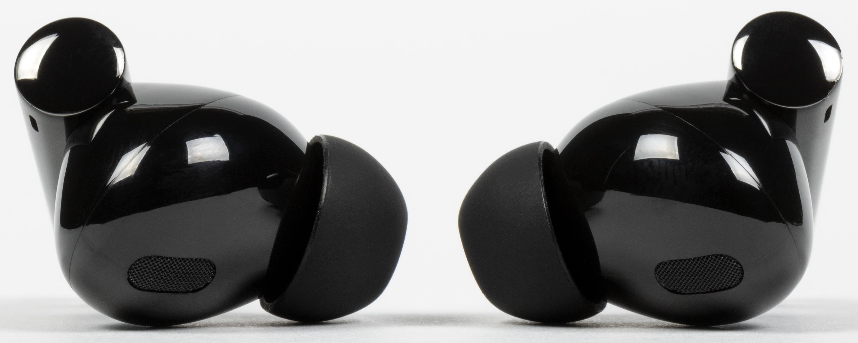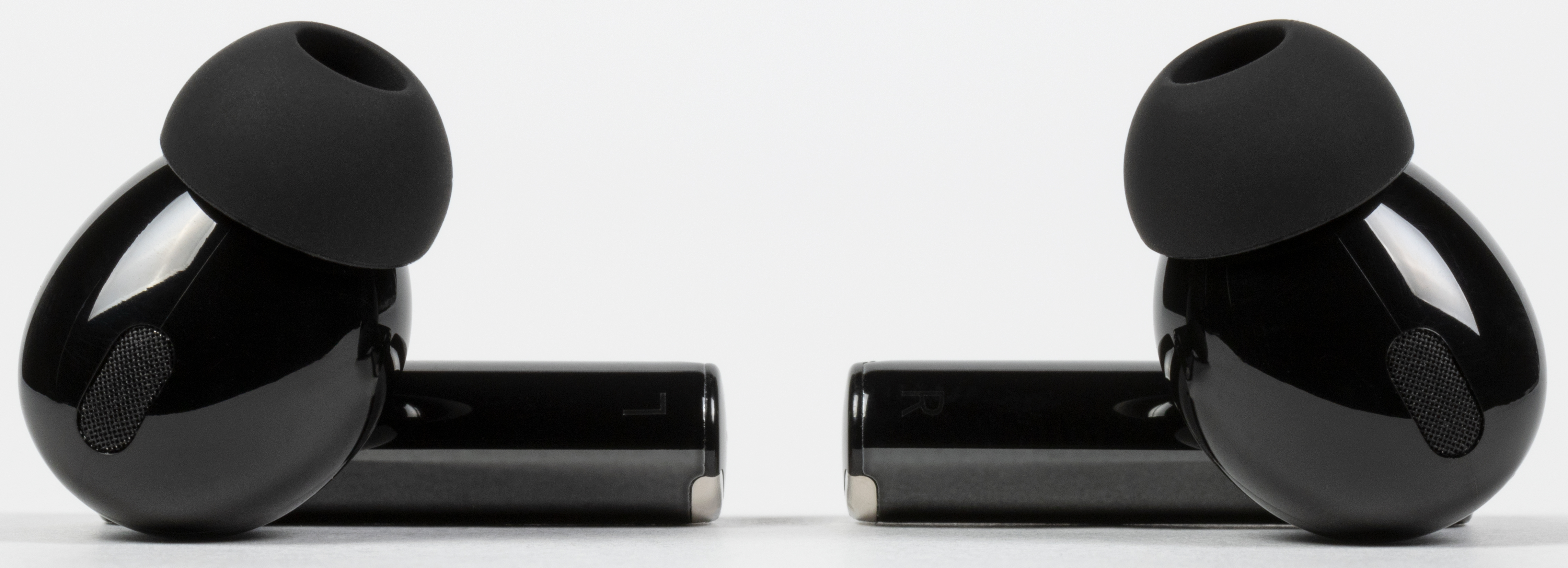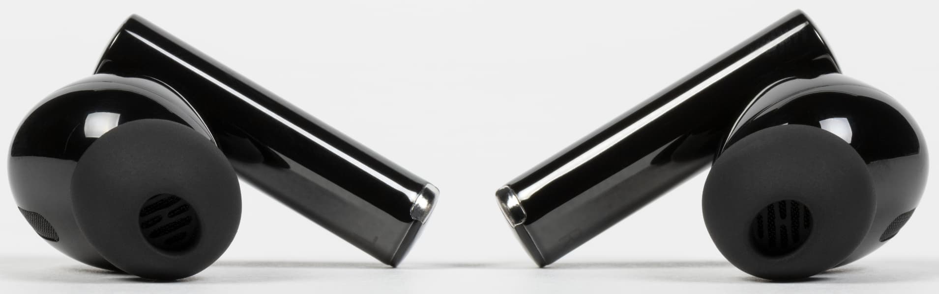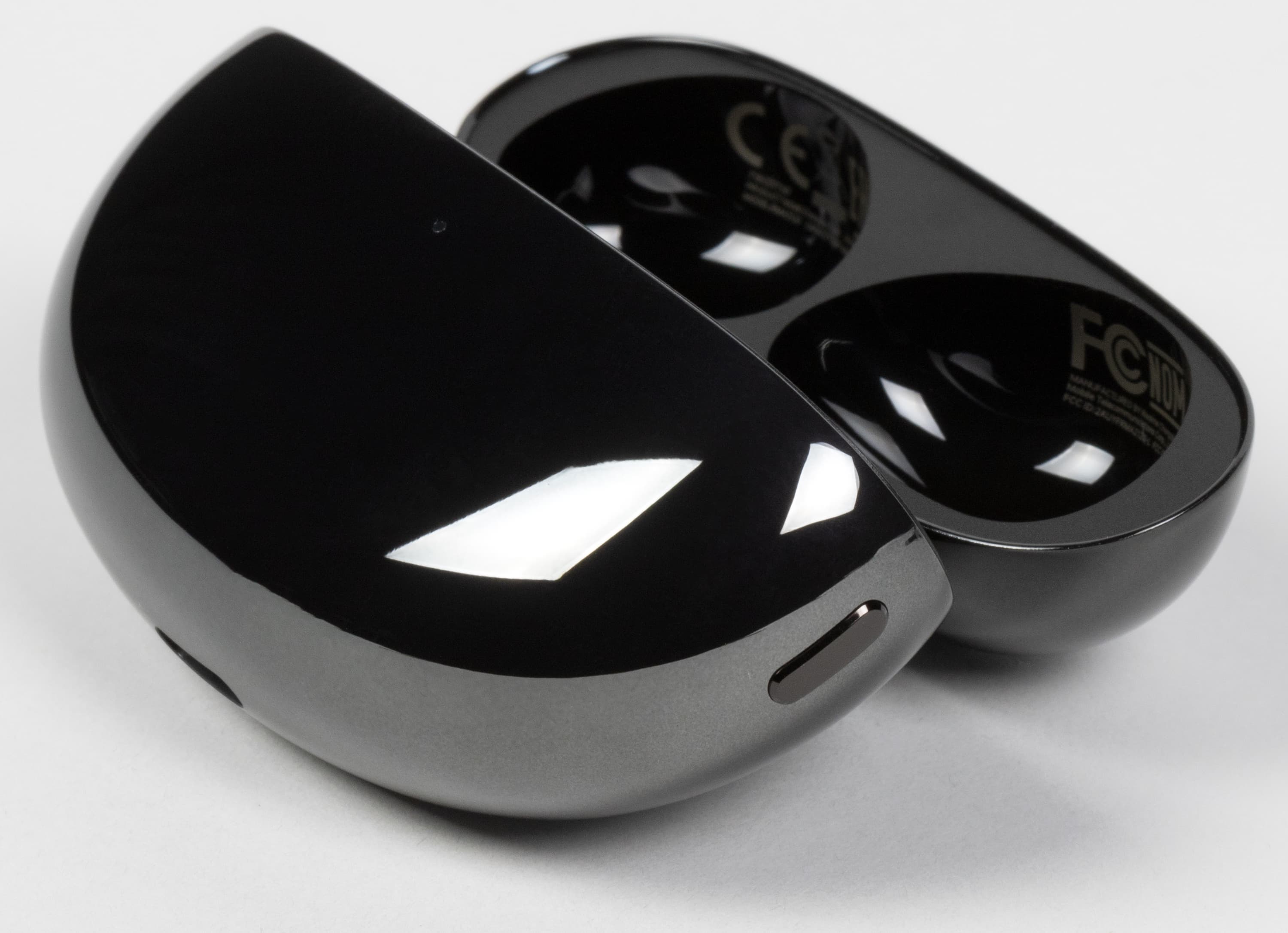 За сеткой на внутренней стороне округлой части, по всей видимости, скрыты сенсоры ношения. Там же находятся микрофоны, обеспечивающие работу системы активного шумоподавления.