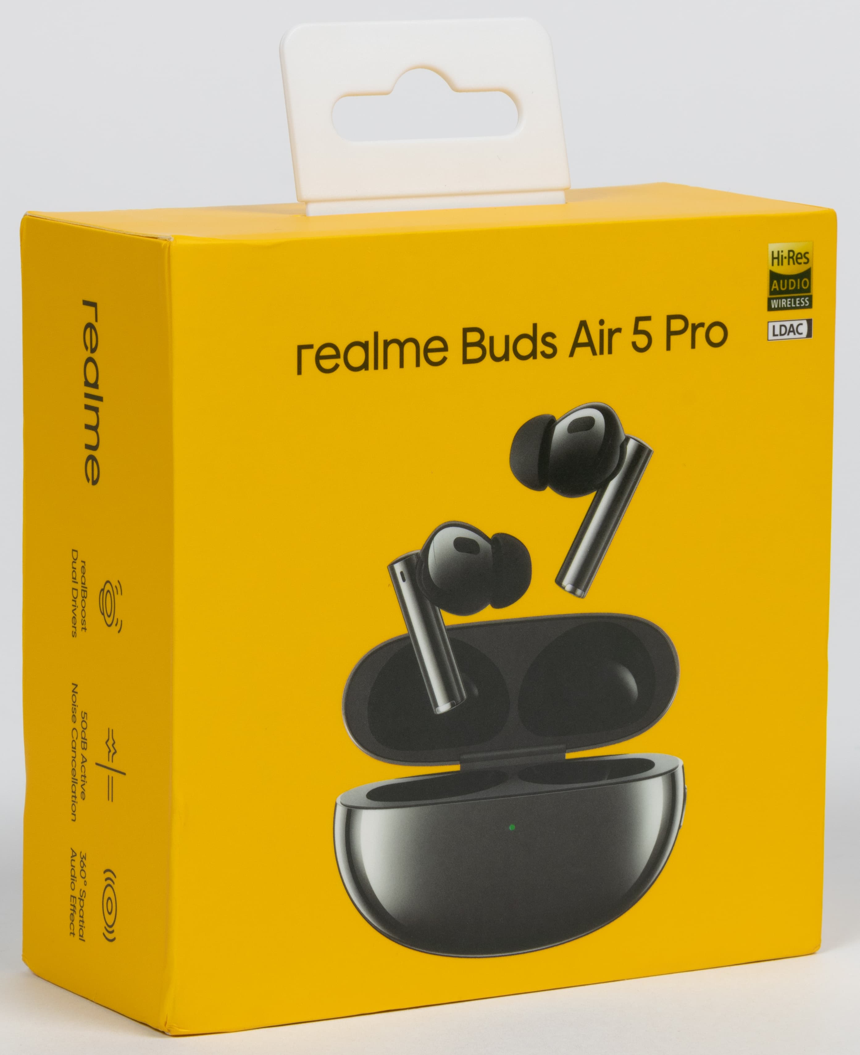 Опять же, буквально пару лет назад мы радовались, что у Realme Buds Air Pro есть «шумодав», хорошая автономность и защита от влаги. А сегодня посмотрим на модель с индексом «5», которая способна предложить гораздо больше. Совсем дешевой ее, правда, при этом уже не назовешь — на момент публикации обзора цена составляла 9 тысяч рублей. Но за эти деньги производитель снабдил гарнитуру крайне впечатляющим списком возможностей и технических характеристик.