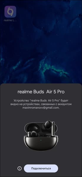 Realme Buds Air 5 Pro поддерживает одновременное подключение к двум устройствам, однако эту функцию необходимо активировать в приложении Realme Link, установку которого можно считать финальным этапом подготовки устройства к работе.