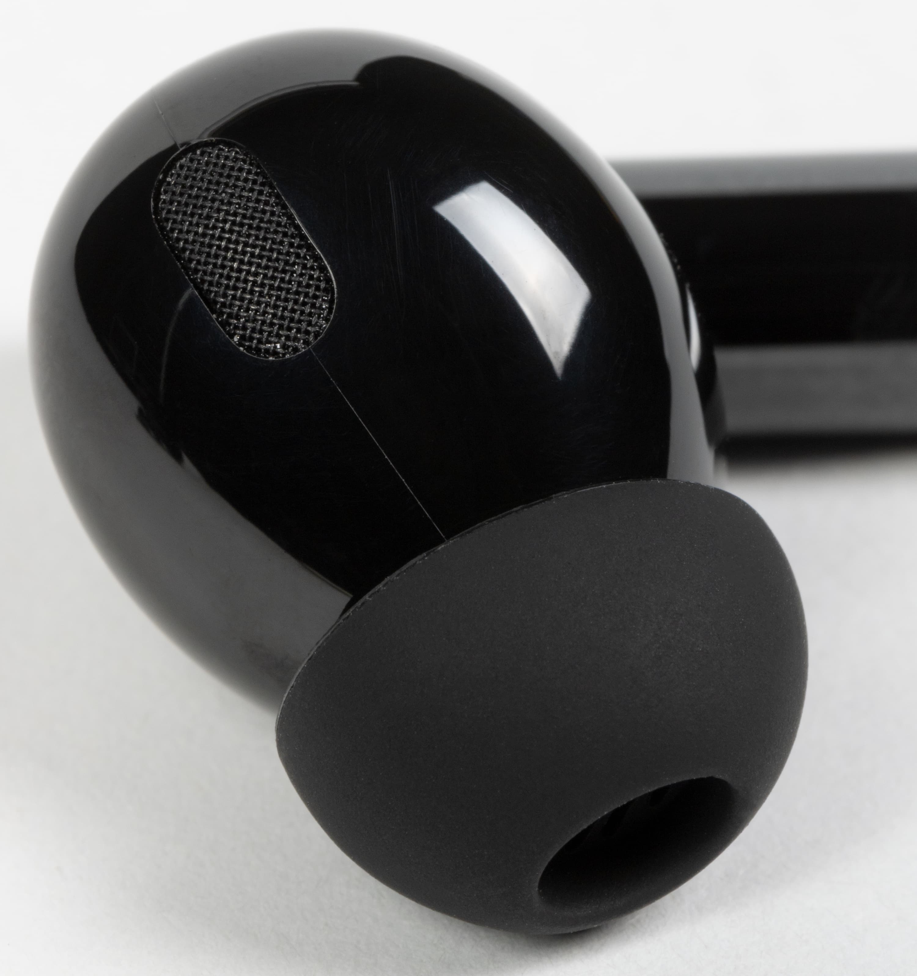 Звуковод имеет среднюю длину и не рассчитан на слишком глубокое погружение в слуховой проход, что потенциально делает посадку более комфортной.