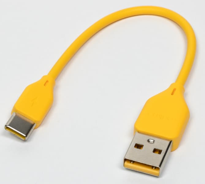 Кабель для зарядки очень симпатично выглядит благодаря яркой желтой окраске, но слишком короткий: всего 15 см.