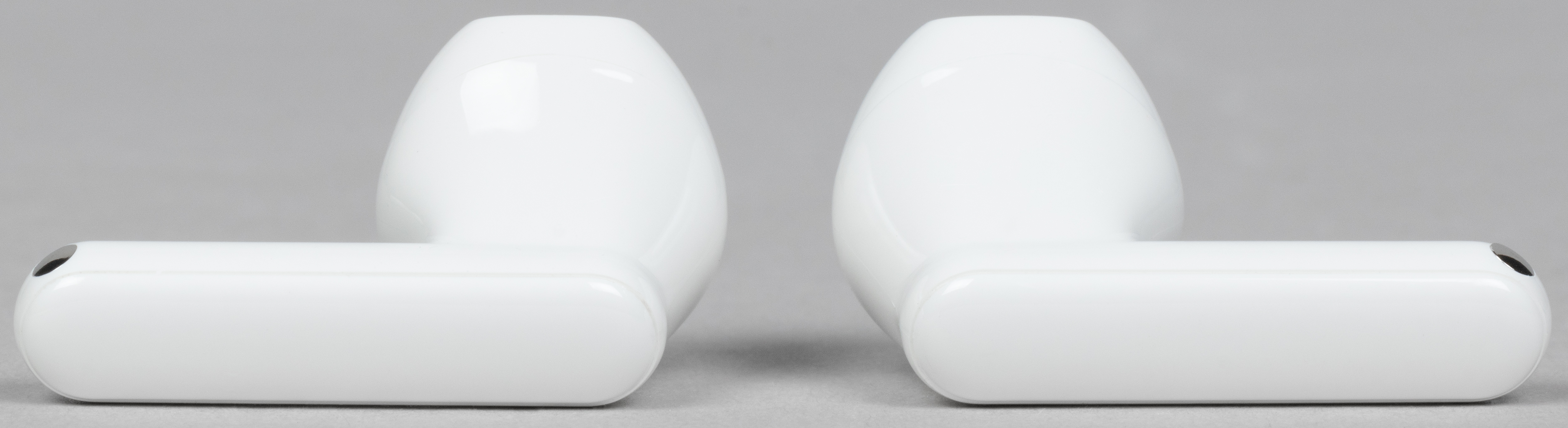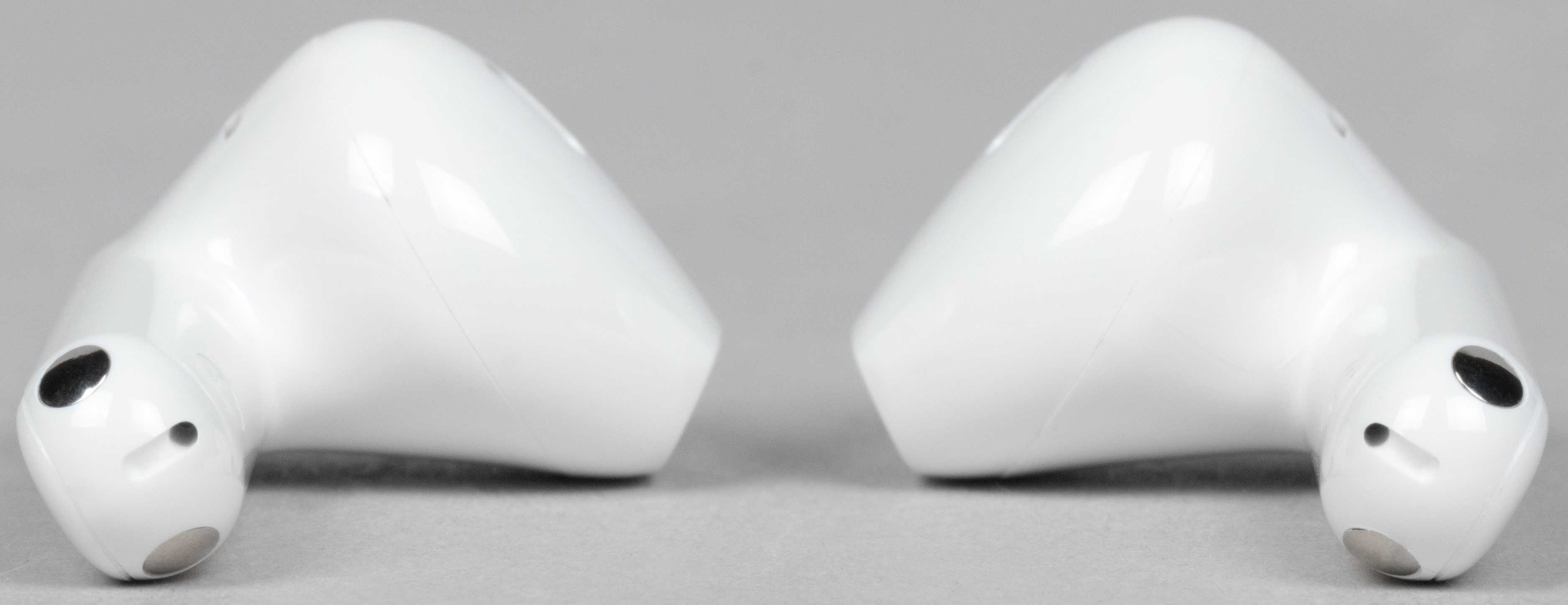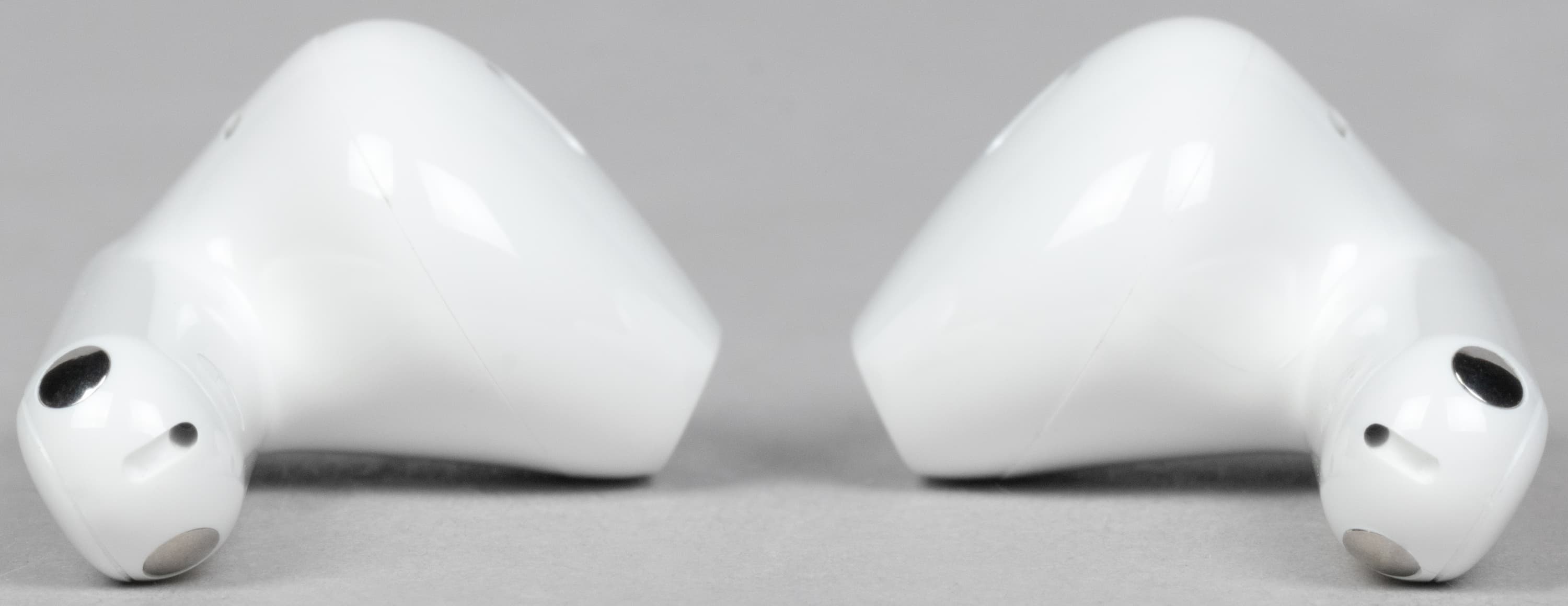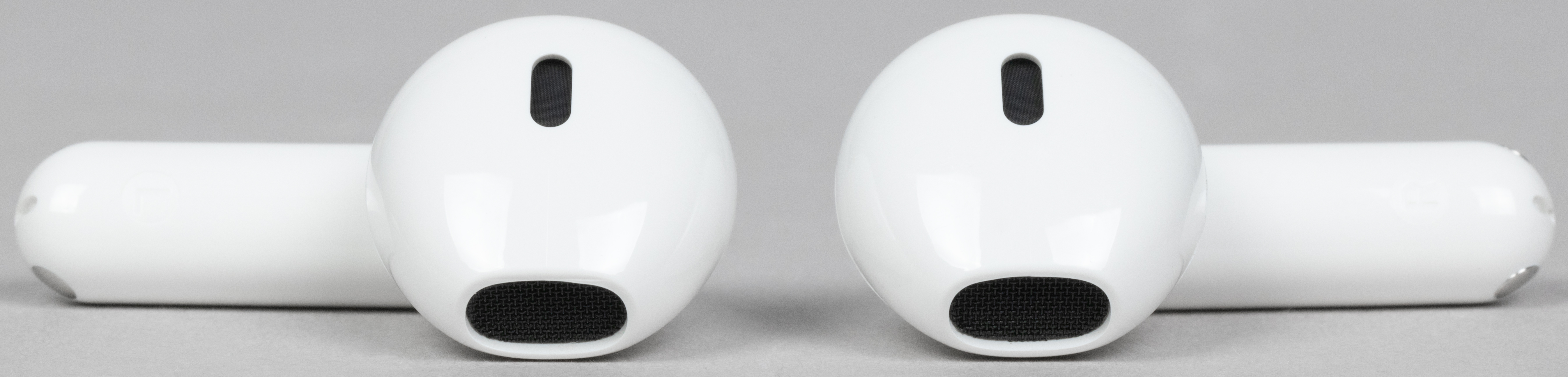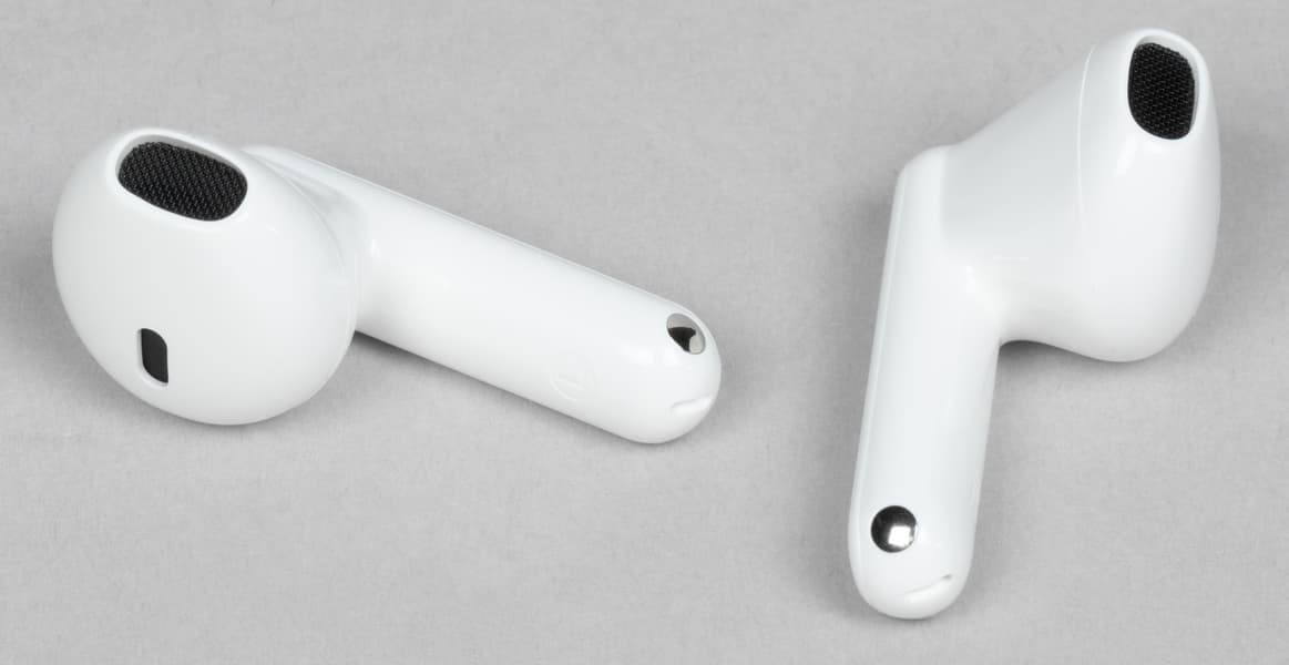 В слотах для наушников видны подпружиненные контакты для зарядки. По бокам находятся едва заметные обозначения «правый-левый».