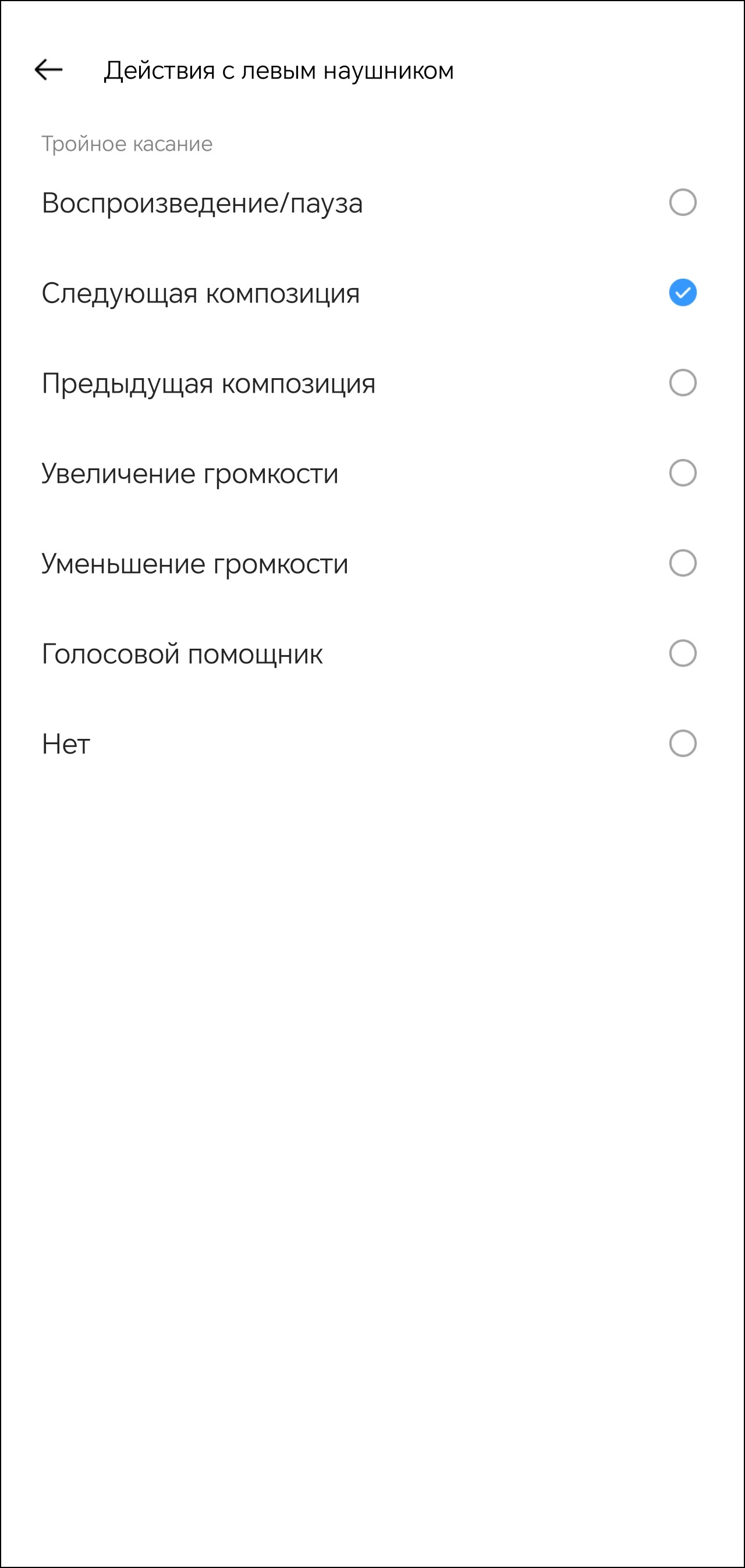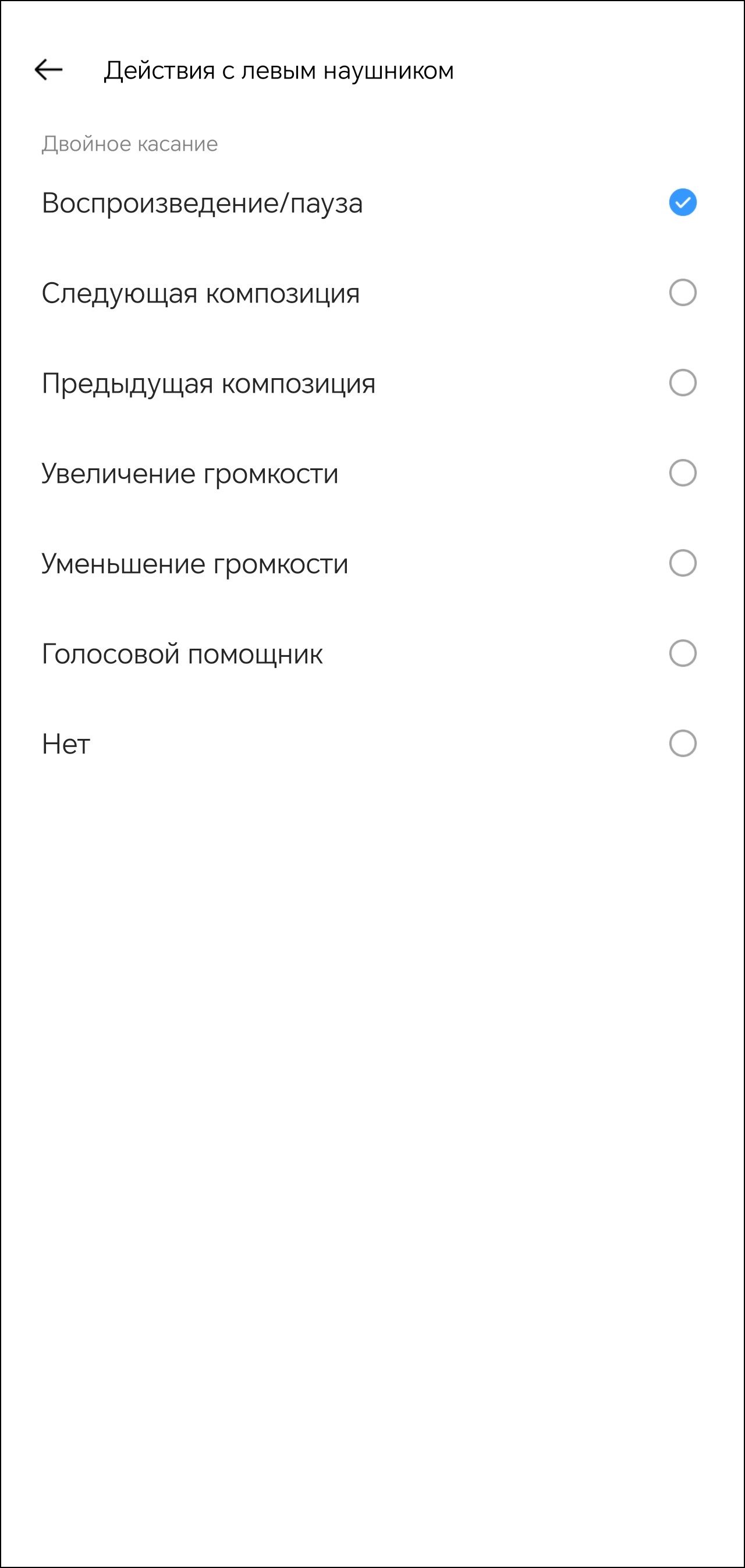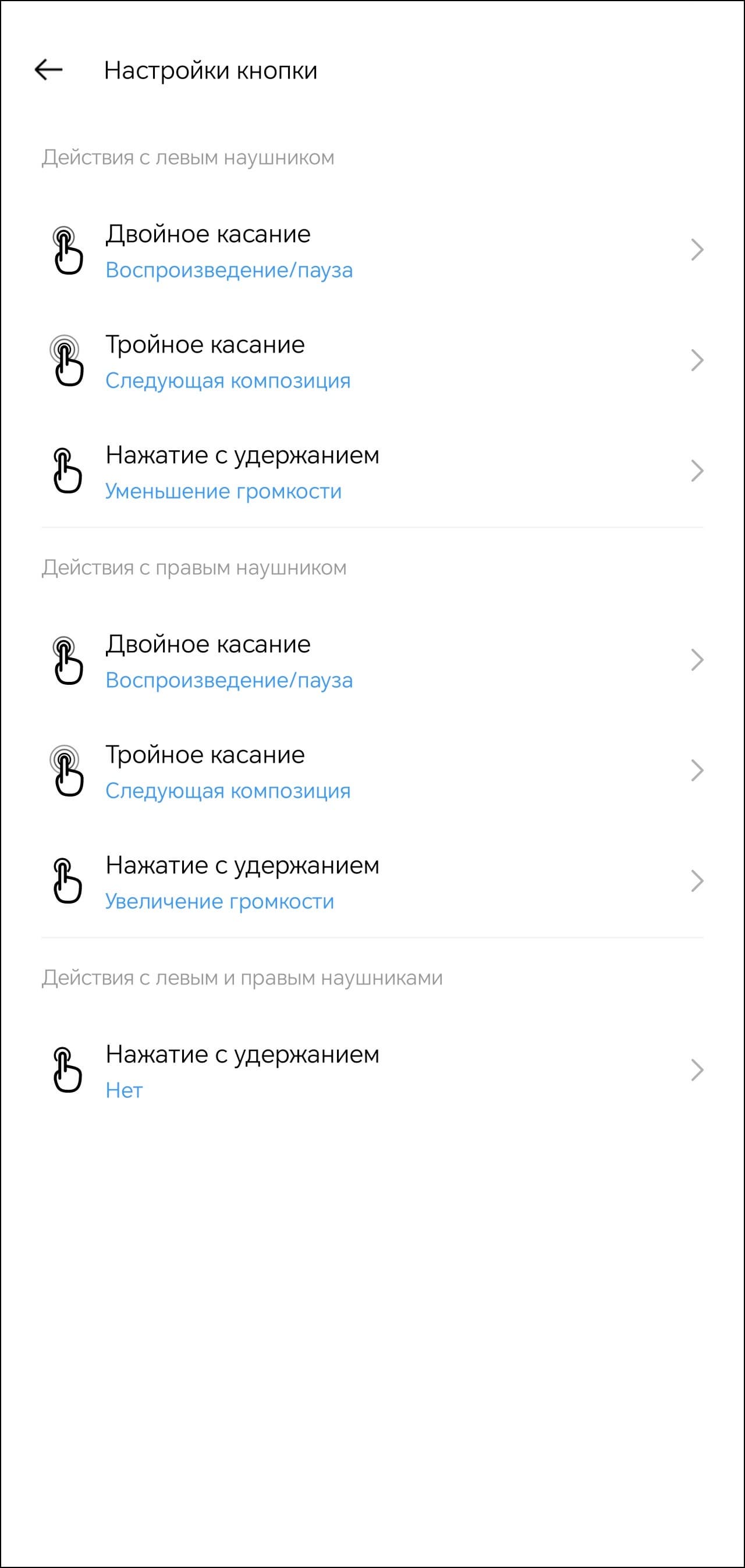 Всего поддерживаются три типа касания, на каждое можно «повесить» одно из шести действий, включая изменение громкости и вызов голосового ассистента.