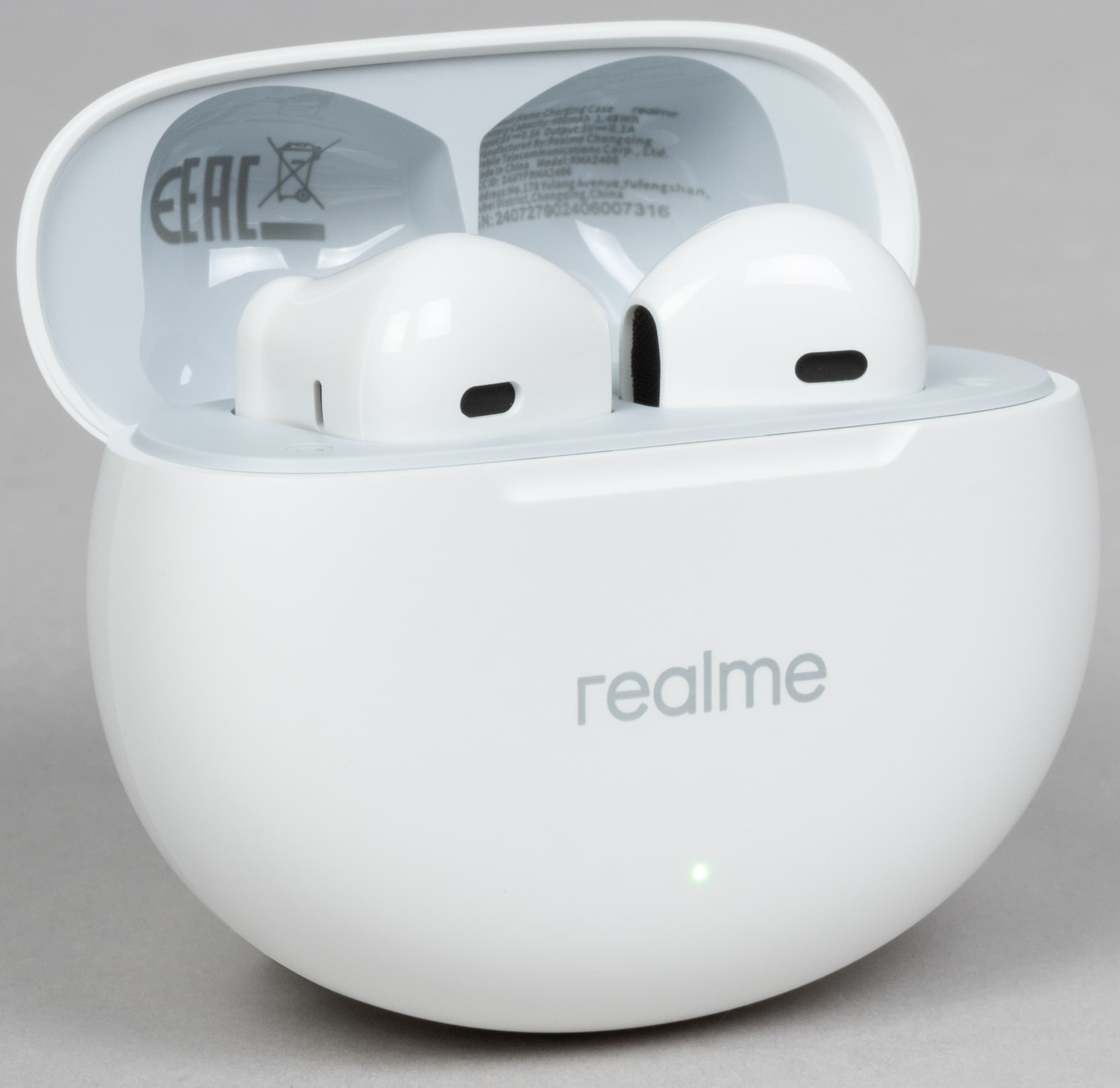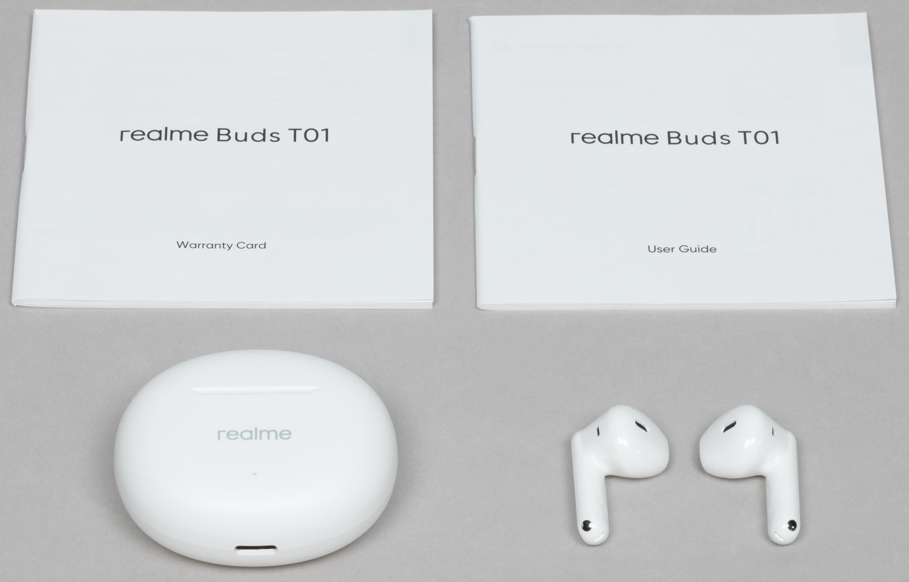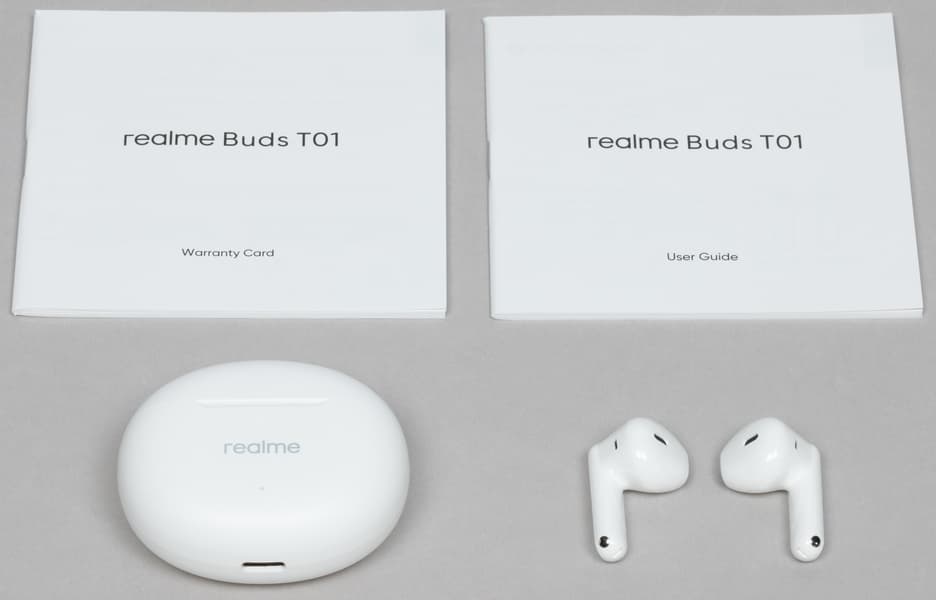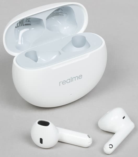 В комплект поставки входят наушники с кейсом и документация, кабеля для зарядки нет — как и у ряда прошлых гарнитур Realme. Вновь отметим, что большой беды в этом нет — вряд ли у современного пользователя не найдется кабеля с разъемом USB-C.
