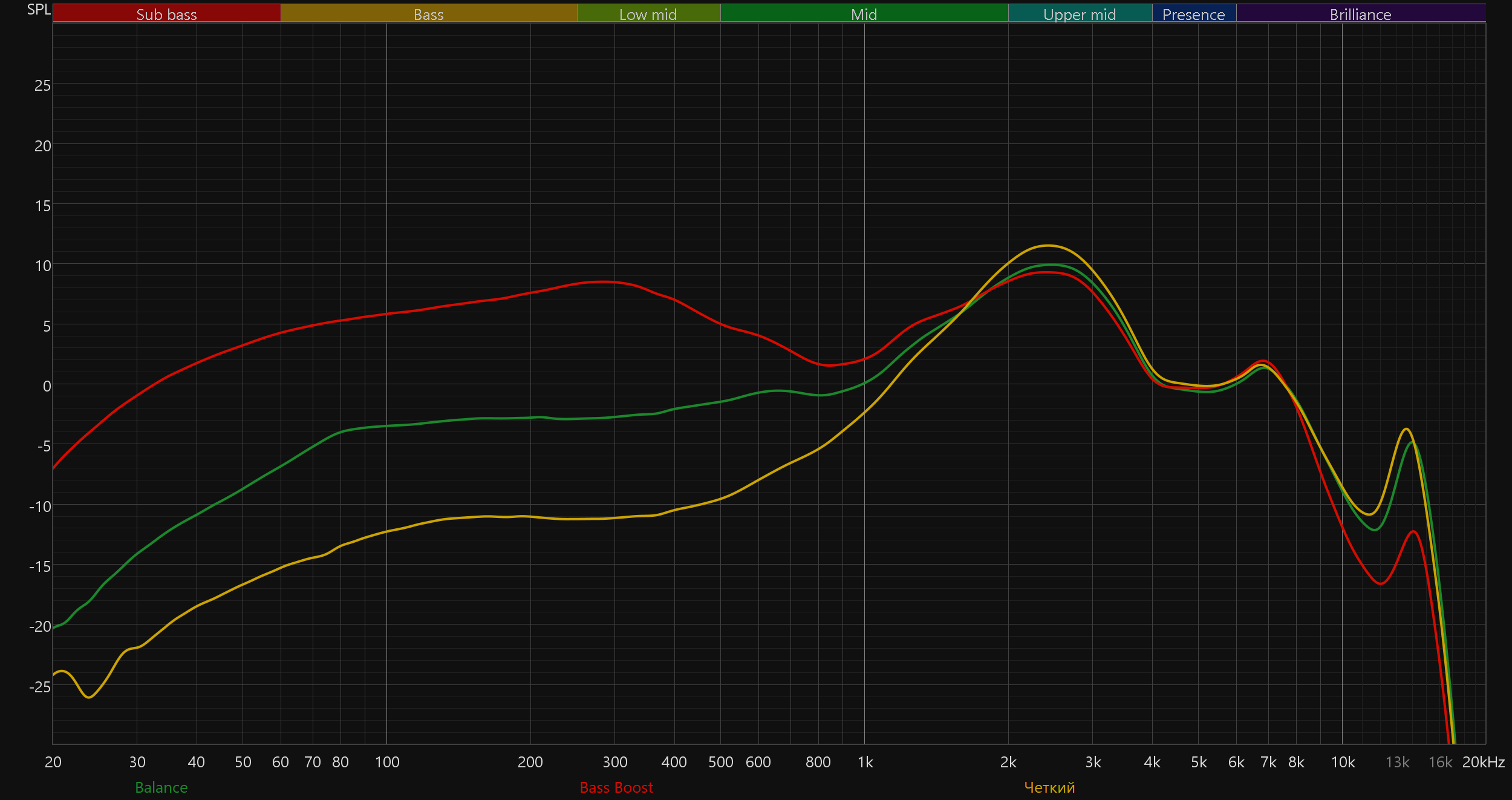 Изменить тональный баланс можно с помощью пресетов эквалайзера в приложении, но работает он слишком экстремально — бас либо сильно форсируется, либо основательно уводится назад. Хотя, если пользователь — заядлый «бассхэд», который по каким-то причинам решил попробовать «вкладыши», режим Bass Boost может оказаться очень кстати.