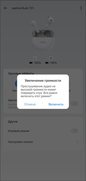 Если не хватает громкости, можно увеличить ее верхний порог специальным переключателем в приложении. Для комфортного и безопасного прослушивания достаточно и обычного режима, при задействовании же данной опции громкости с большим запасом хватит даже любителям «врубить на полную».