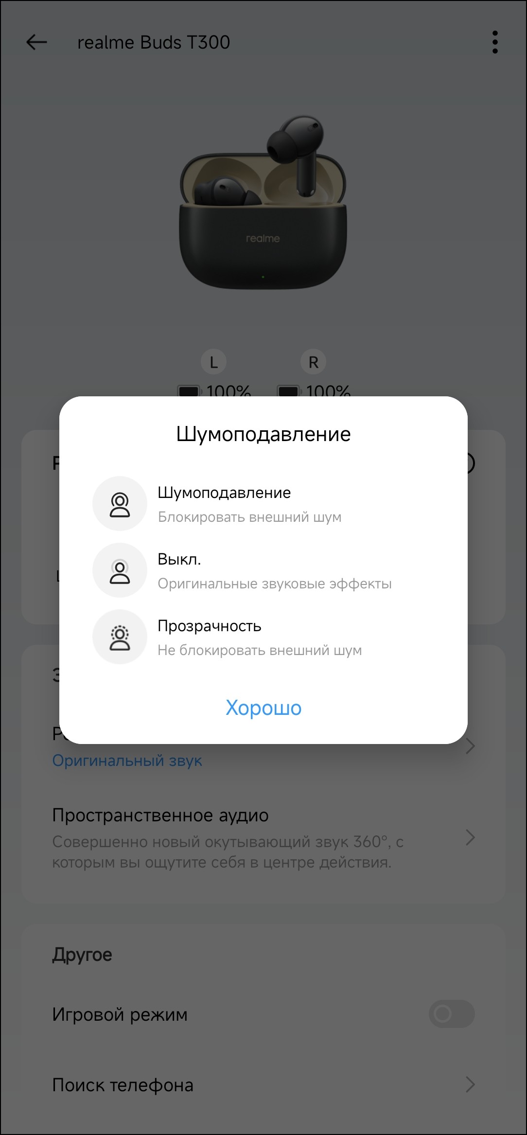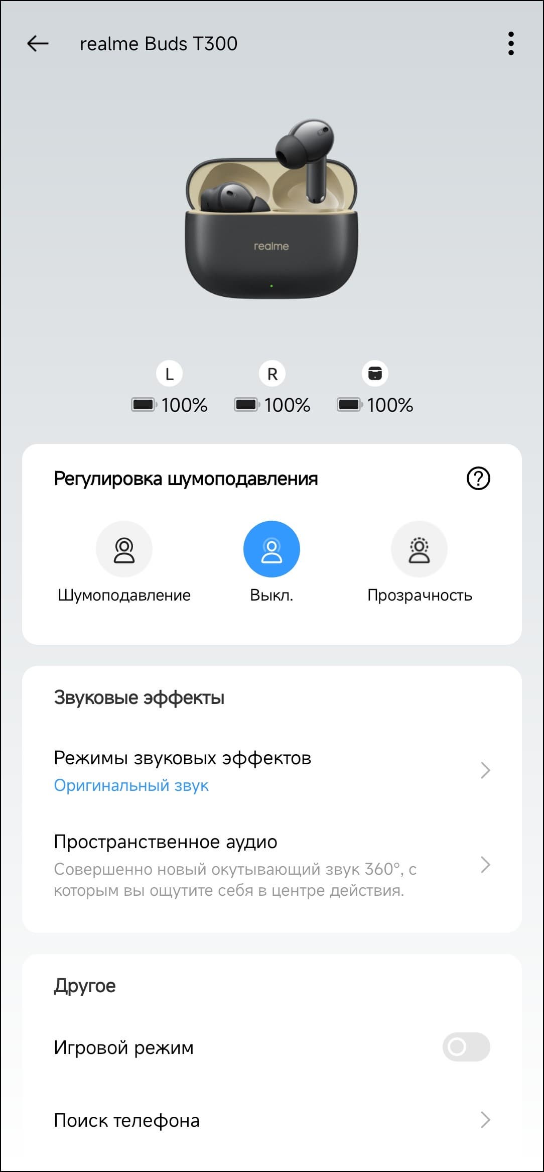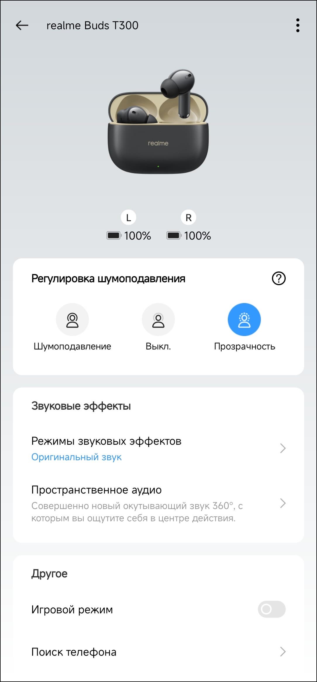 Приложение Realme Link мы так или иначе разбирали во всех обзорах, ссылки на которые были выше. Потому сегодня не будем вдаваться в подробности — просто пробежимся по настройкам, которые доступны для тестируемой гарнитуры.
