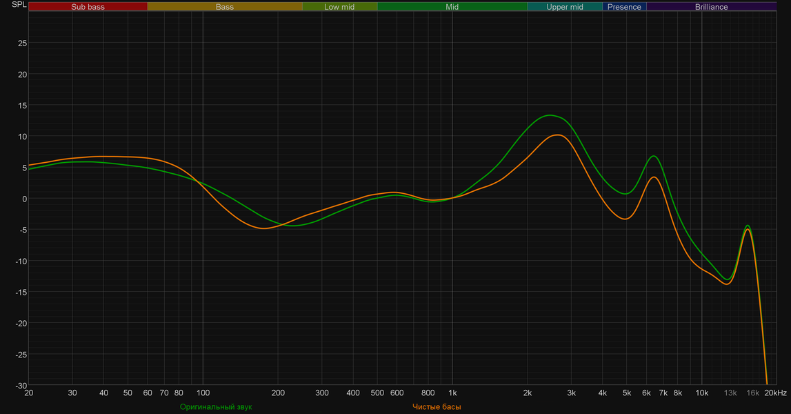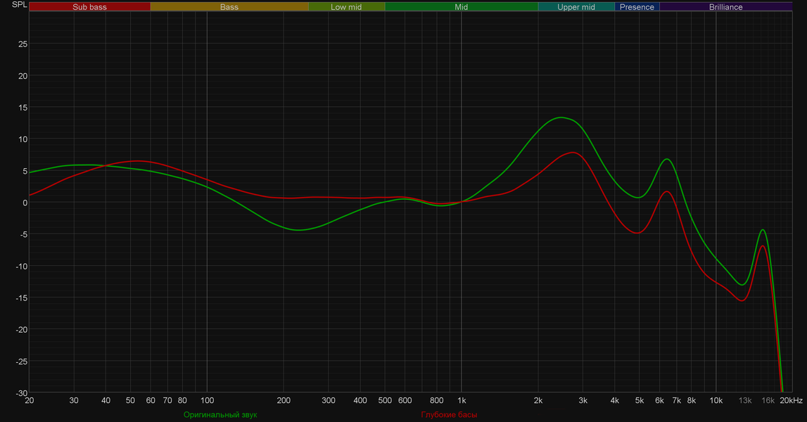 Снова наушники для бассхедов, в плейлисте которых преобладают хип-хоп и танцевальная музыка, интересно звучащие с настолько форсированным басом. «Глубокого баса» хоть отбавляй, при этом он довольно-таки гулкий и мешает восприятию середины. Всё практически точно так же, как и у уже упомянутой выше Realme Buds Air 5, но нижняя часть СЧ-диапазона еще больше уведена назад.