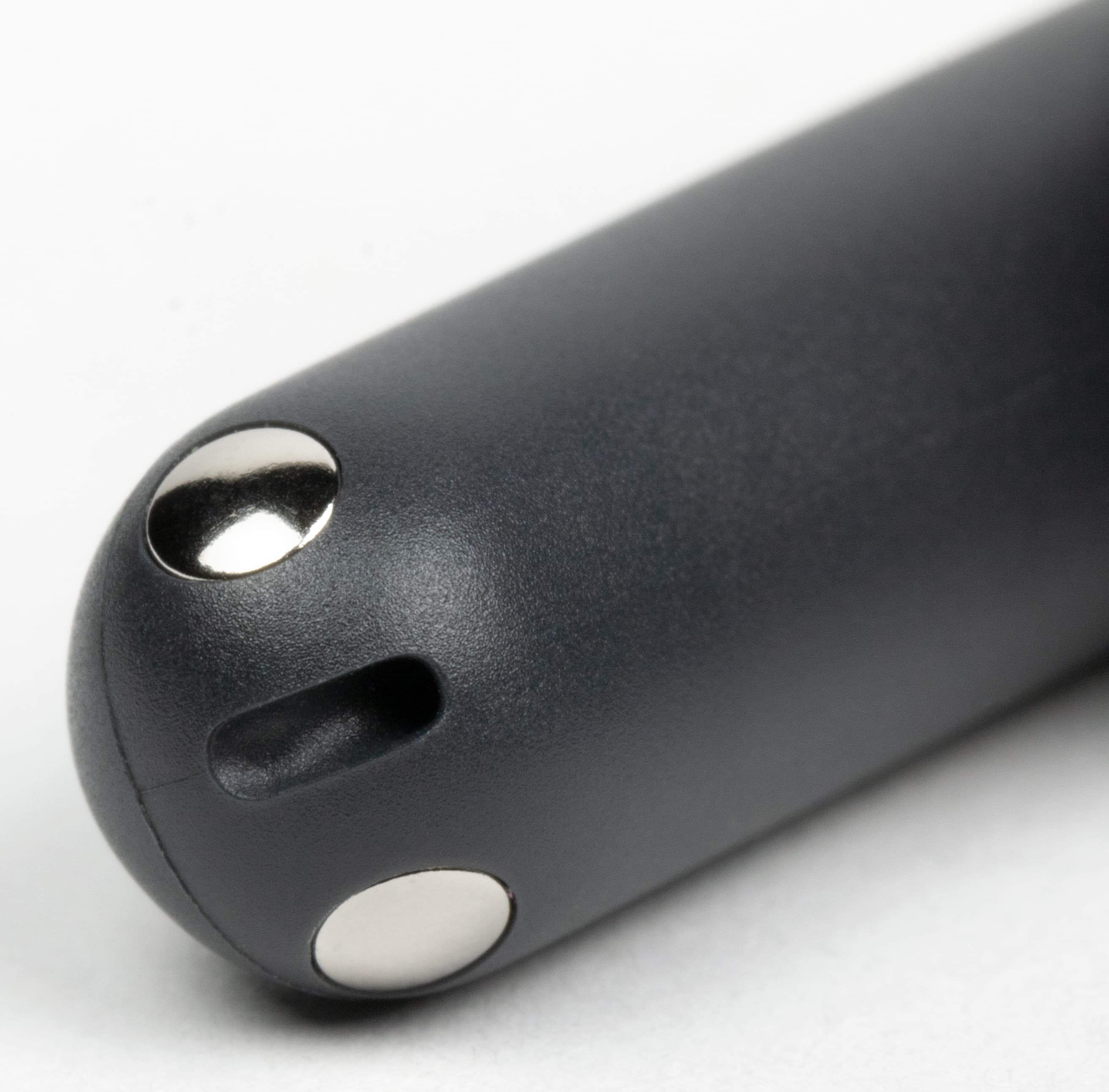 На торце «палочек» контакты для зарядки гарнитуры, плюс уже упомянутые выше отверстия микрофонов. Всего микрофонов по три в каждом наушнике — еще раз посмотрим на каждый.