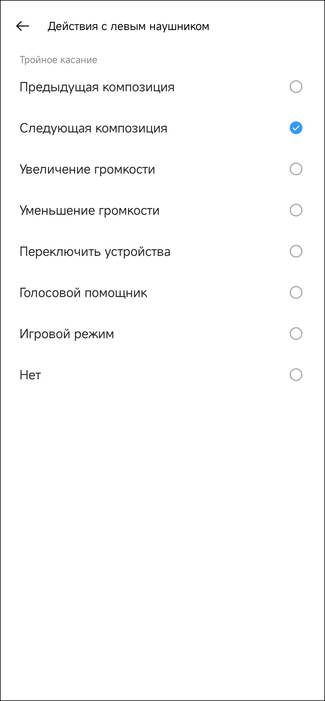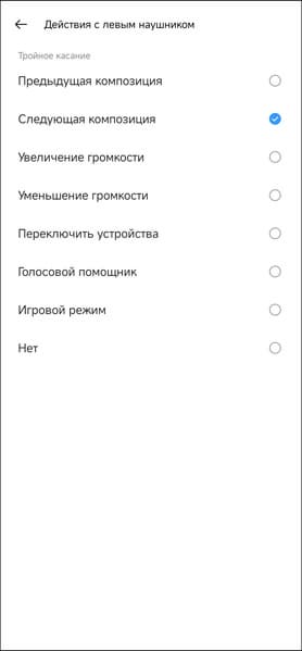 Как и в других актуальных гарнитурах Realme, управление настраивается отдельно для правого и левого наушника, доступны все самые востребованные действия, включая изменение громкости.