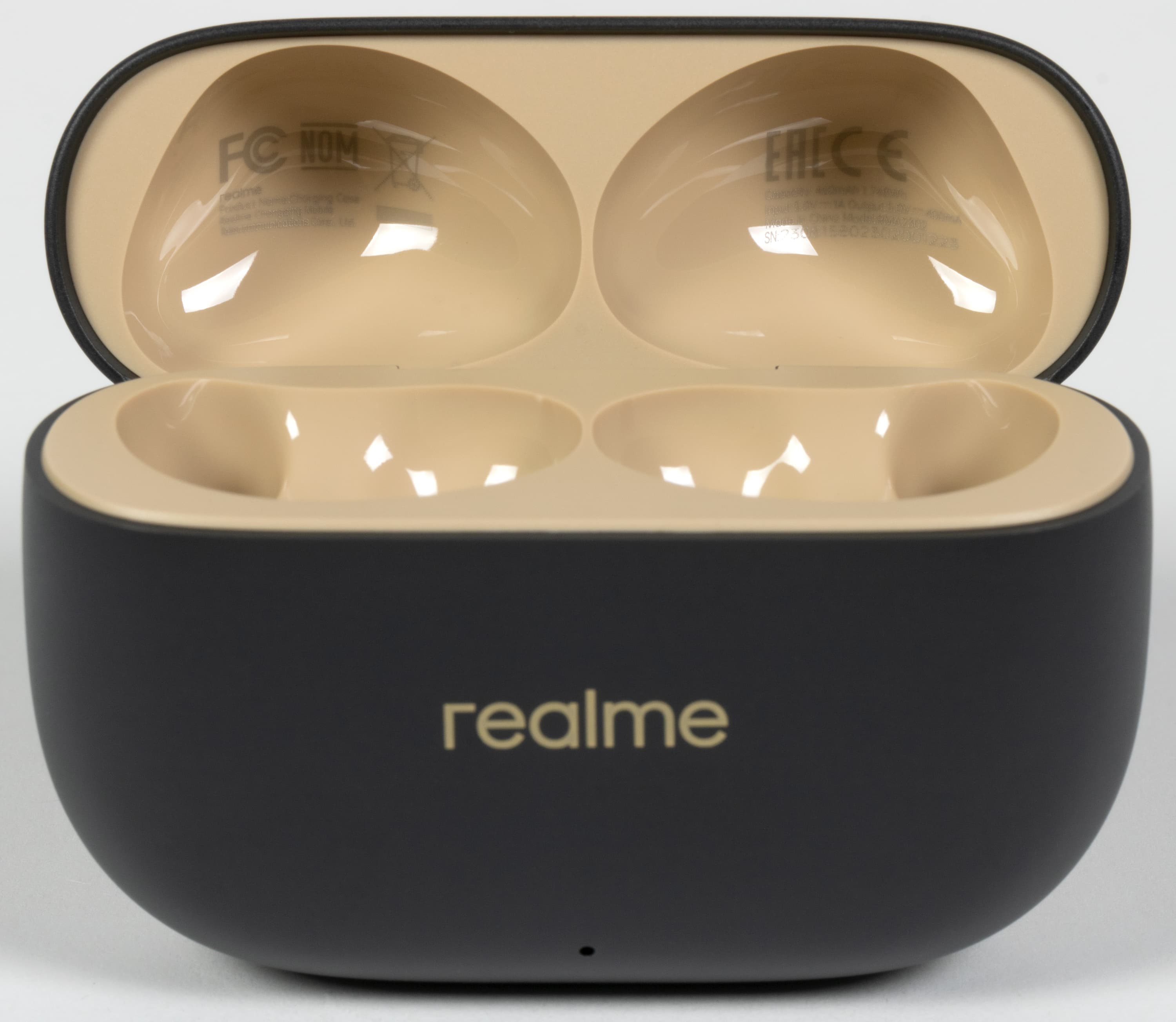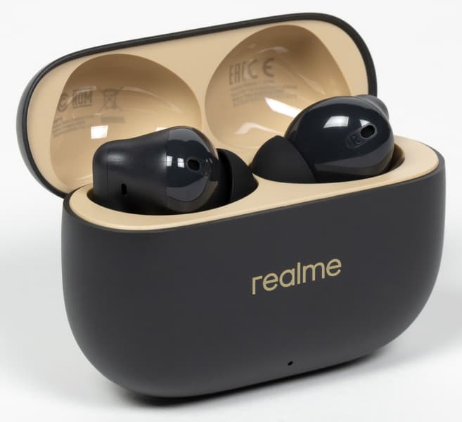 Для более плотной фиксации в кейсе служат углубления в крышке для округлой части наушников. Срабатывает это хорошо, «тест на погремушку» Realme Buds T300 проходит без проблем: даже если специально трясти кейс с наушниками возле уха, внутри не раздается ни звука.