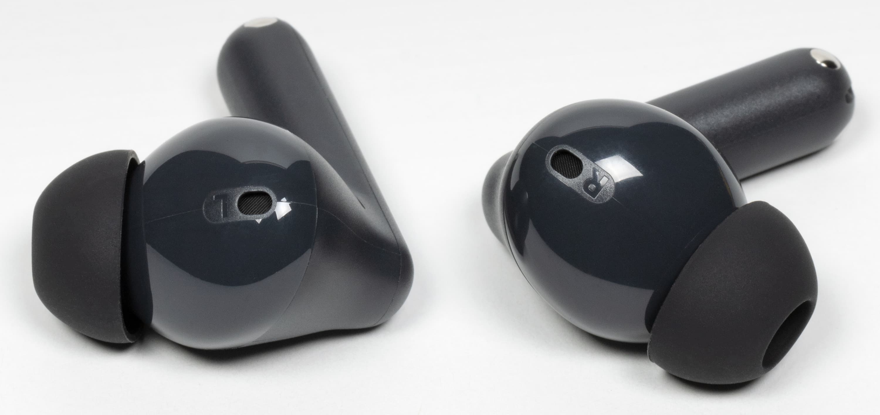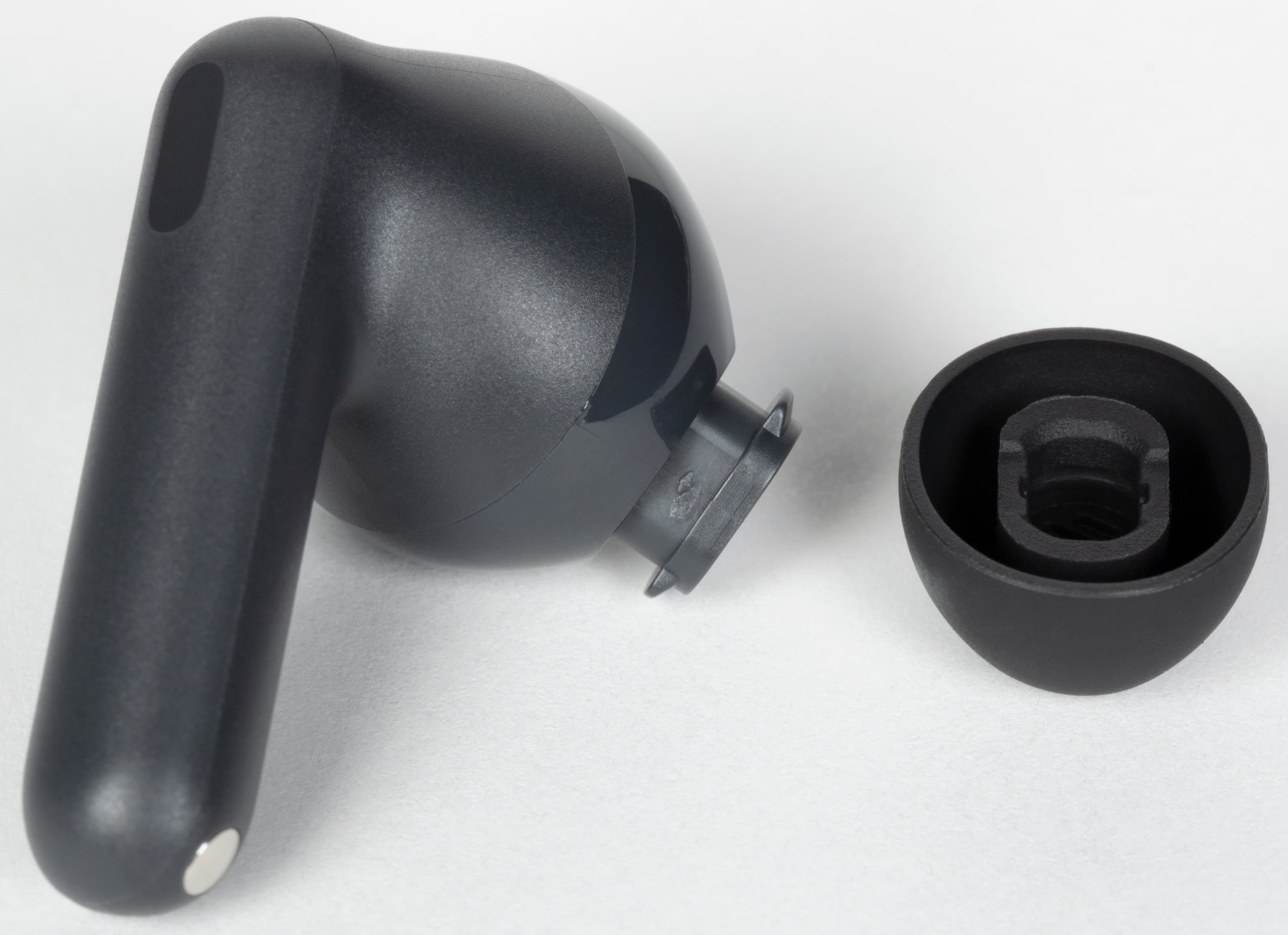 Итак, внутренний микрофон системы шумоподавления размещен на округлой части, обращенной при ношении к уху.