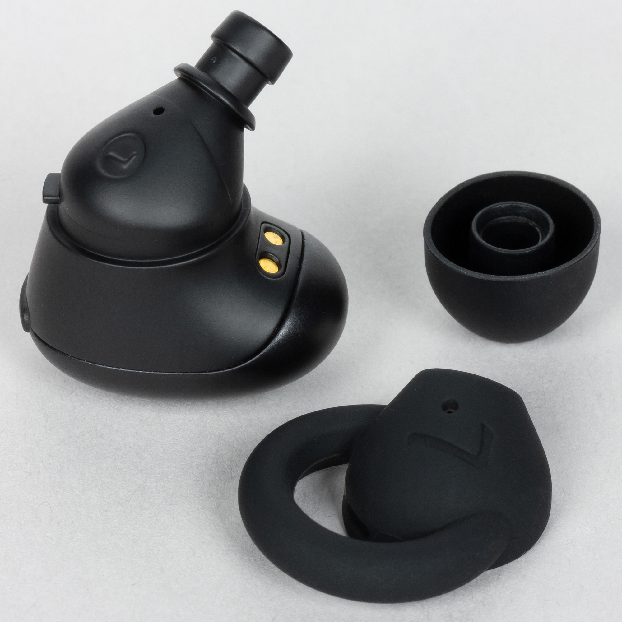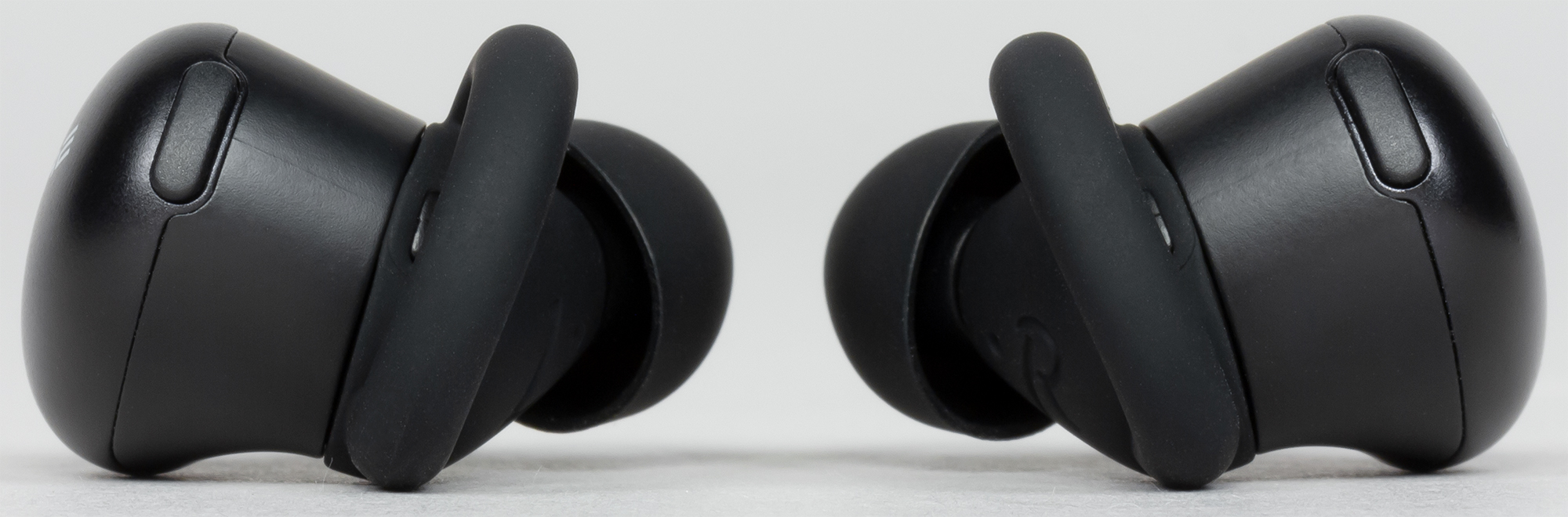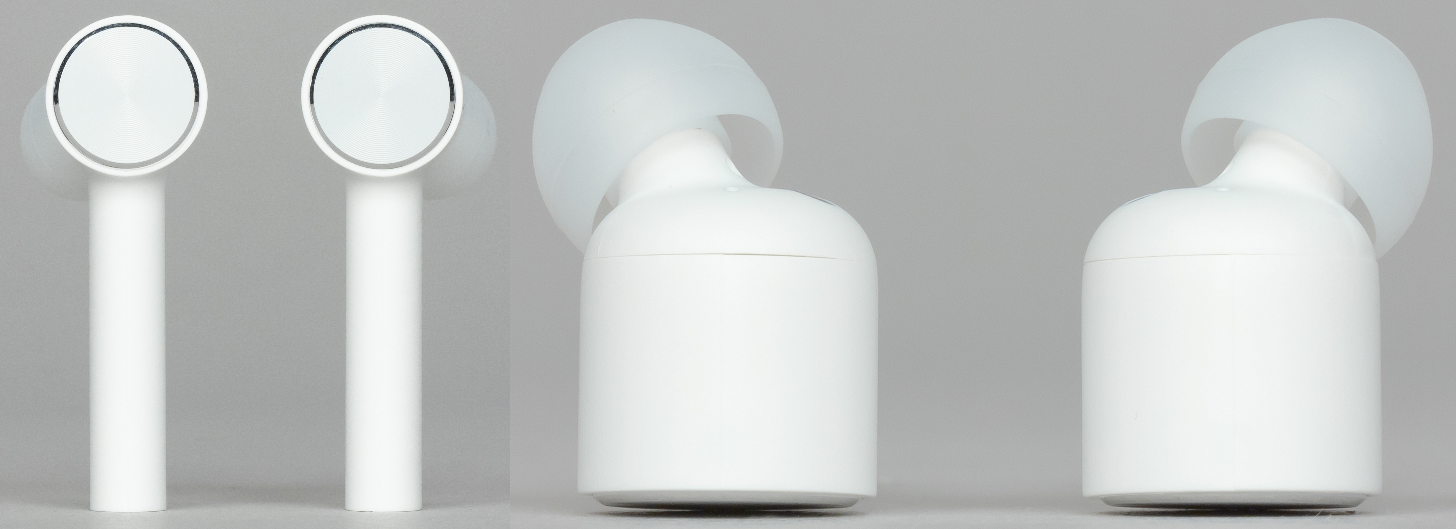 1More Stylish True Wireless имеют каплевидную форму. Больше всего в их дизайне обращают на себя внимание резиновые детали, служащие для дополнительной фиксации наушников в ушной раковине — к ним мы еще вернемся отдельно.