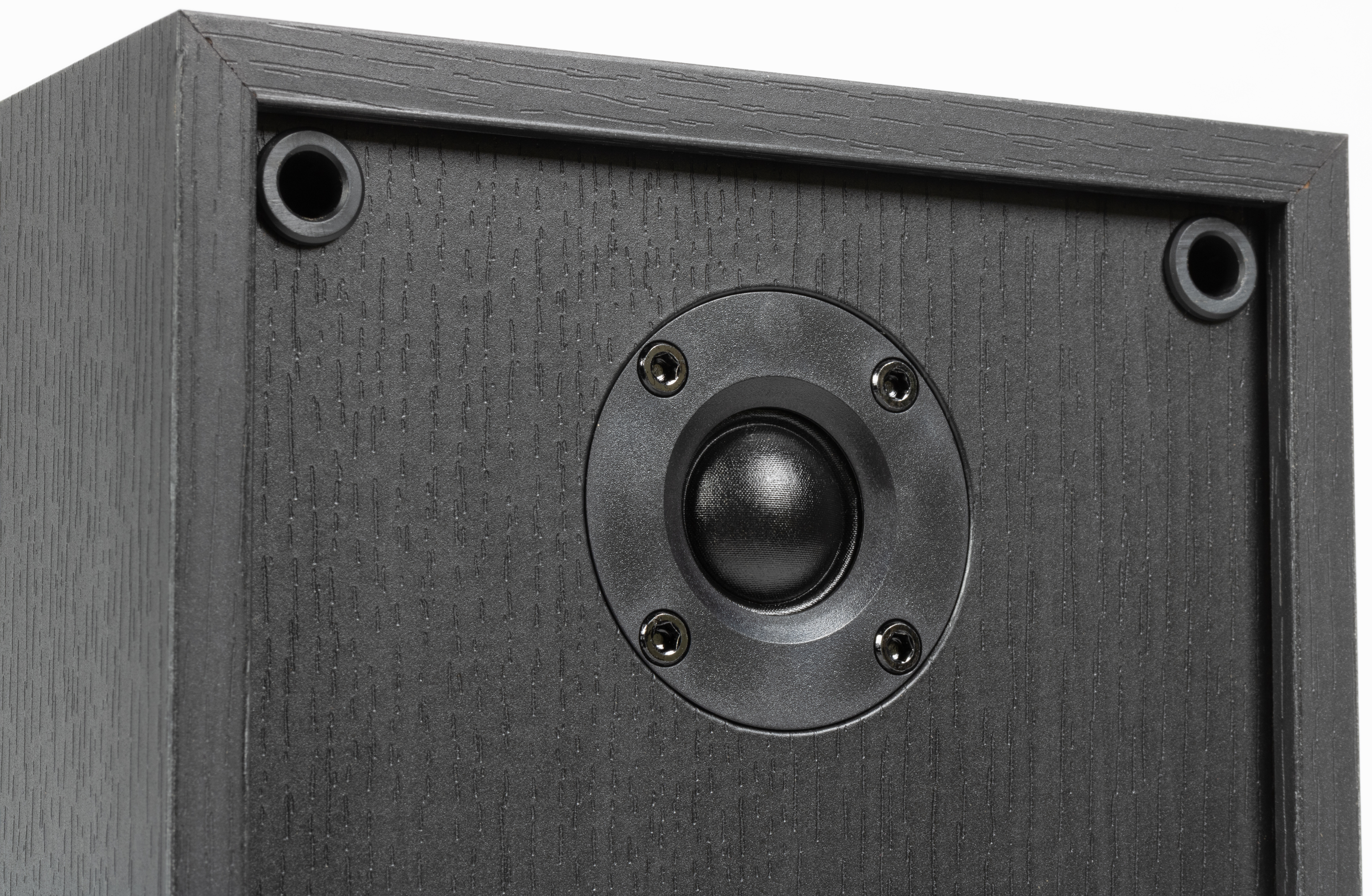 Выполнены колонки из того же материала, что и проигрыватель — MDF с ламинацией. Поверхности устойчивы к загрязнениям и легко поддаются очистке.