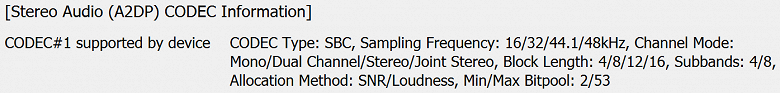 Полный список поддерживаемых кодеков и их режимов мы традиционно получили с помощью утилиты Bluetooth Tweaker.