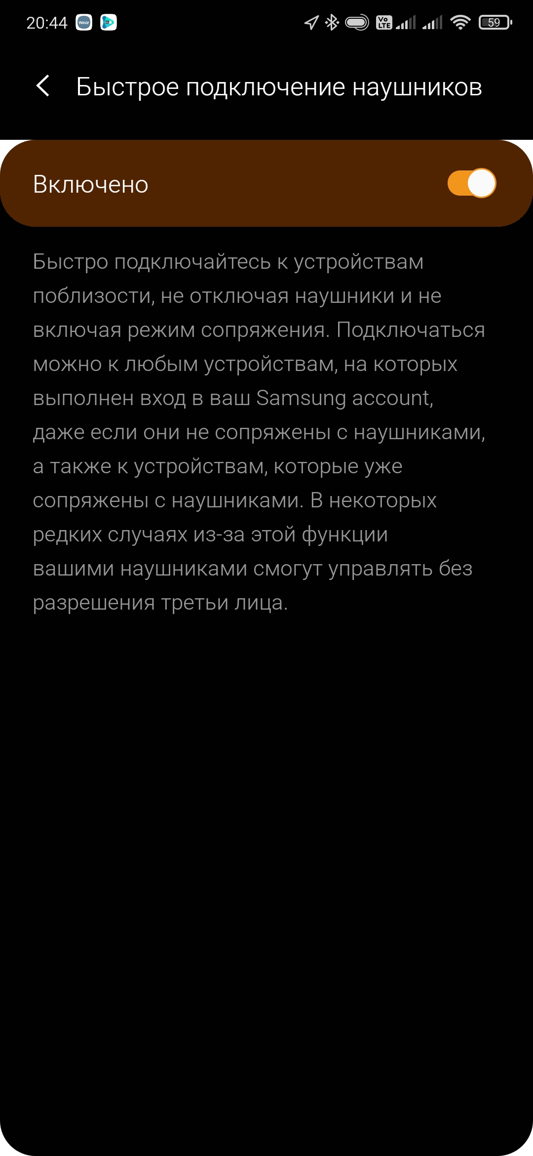 Также в паре со смартфонами Samsung работает функция Buds Together, которая позволяет подключать к ним сразу две пары Galaxy Buds Live, чтобы слушать музыку вместе с кем-нибудь. А еще есть возможность «переносить» данные о сопряжении с устройства на устройство через учетную запись Samsung. И «игровой режим», который позволяет минимизировать вероятность «рассинхрона» звука и картинки при гейминге. В общем, у владельцев смартфонов корейского производителя есть ряд весьма внушительных «бонусов». В целом, это совсем даже не удивительно — бренд в первую очередь заботится о лояльных к себе пользователях. Но вот aptX все равно был бы далеко не лишним.