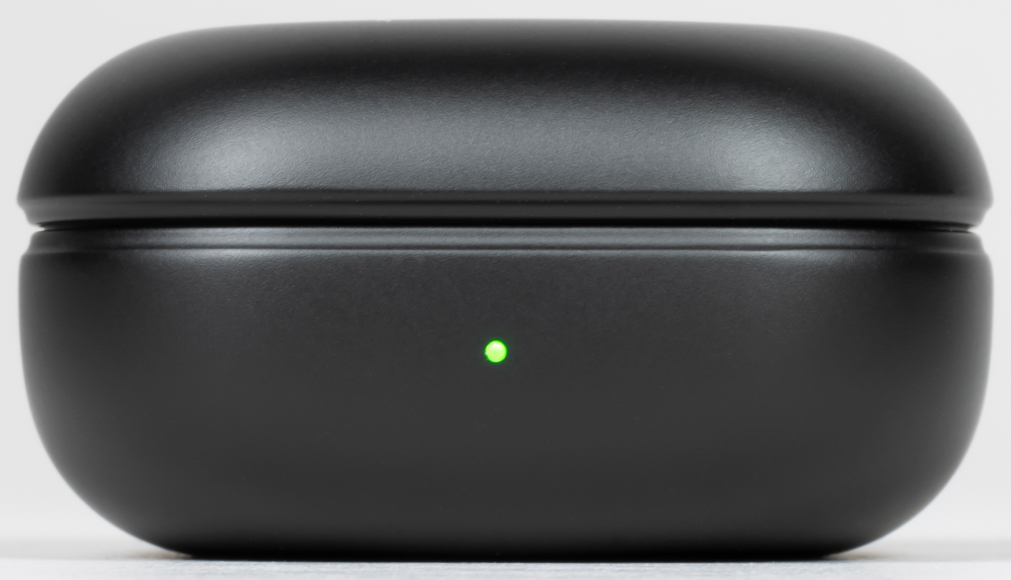 Кейс выглядит солидно и презентабельно, как и положено представителю премиального сегмента, к которому Buds Pro относит производитель. Выполнен он из матового пластика, не склонного к появлению следов от пальцев и прочих загрязнений. Размеры невелики — всего 50×50,2×27,8 мм. Вполне влезет и в карман, и в небольшую дамскую сумку…