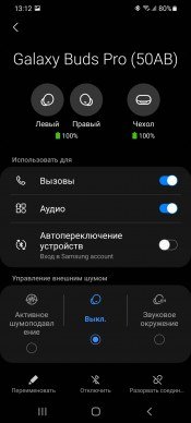 В настройках устройства при этом сразу видны уровни зарядки обоих наушников и кейса, доступно управление шумоподавлением и «режимом прозрачности», блокировка касаний… Но все-таки большая часть управления происходит с помощью ПО Galaxy Wearable, о котором мы поговорим подробно чуть ниже. Запустить приложение можно прямо со страницы настроек — если оно еще не установлено, система автоматически его скачает и настроит.