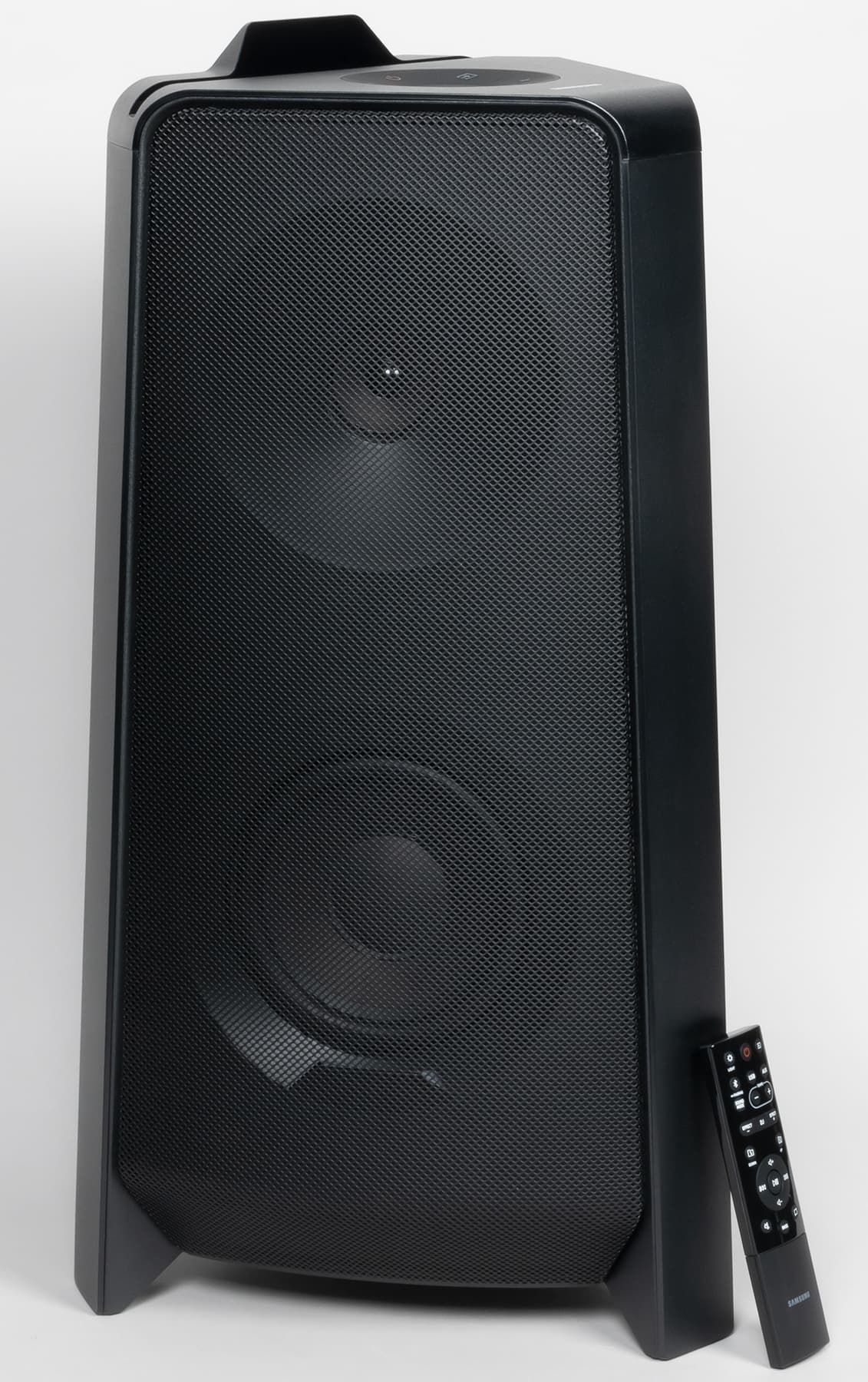 Как и говорилось во введении, Samsung Sound Tower MX-T50 — весьма «продвинутое» устройство, обладающее массой разнообразных функций разной степени полезности. Встроенного аккумулятора у него нет, что довольно сильно ограничивает спектр возможных сценариев применения, зато все остальное в наличии — от хорошего запаса громкости и неплохого звука до подсветки и караоке. Но и цена, прямо скажем, не самая низкая. Хотя вряд ли она остановит тех, кто хочет иметь возможность закинуть в багажник своего автомобиля «переносную вечеринку» и отправиться веселиться на дачу. Или владельцев частных домов, которые хотят одновременно озвучивать и гостиную, и веранду, и еще какие-нибудь помещения. В общем, свою аудиторию акустика явно найдет.
