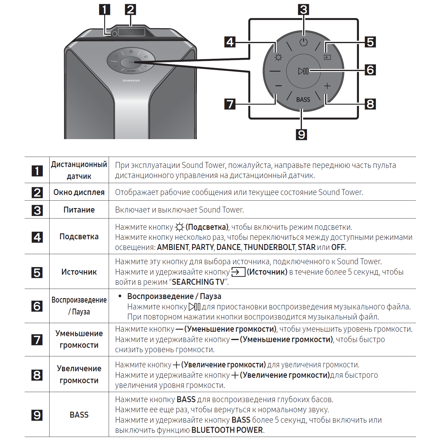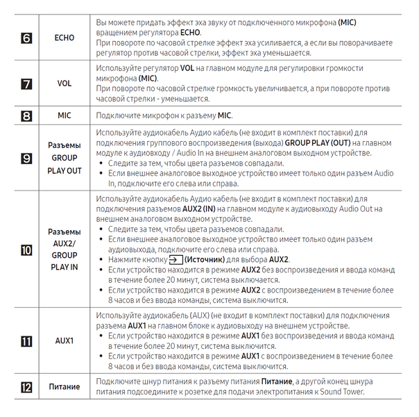 Нажимаются кнопки легко и с приятным кликом, регуляторы вращаются плавно, разъемы сделаны добротно — в общем, все выполнено на должном уровне качества, как-никак это Samsung. Перечислять функции всего, что есть на задней панели бессмысленно, лучше просто процитируем инструкцию, где все показано подробно и наглядно.