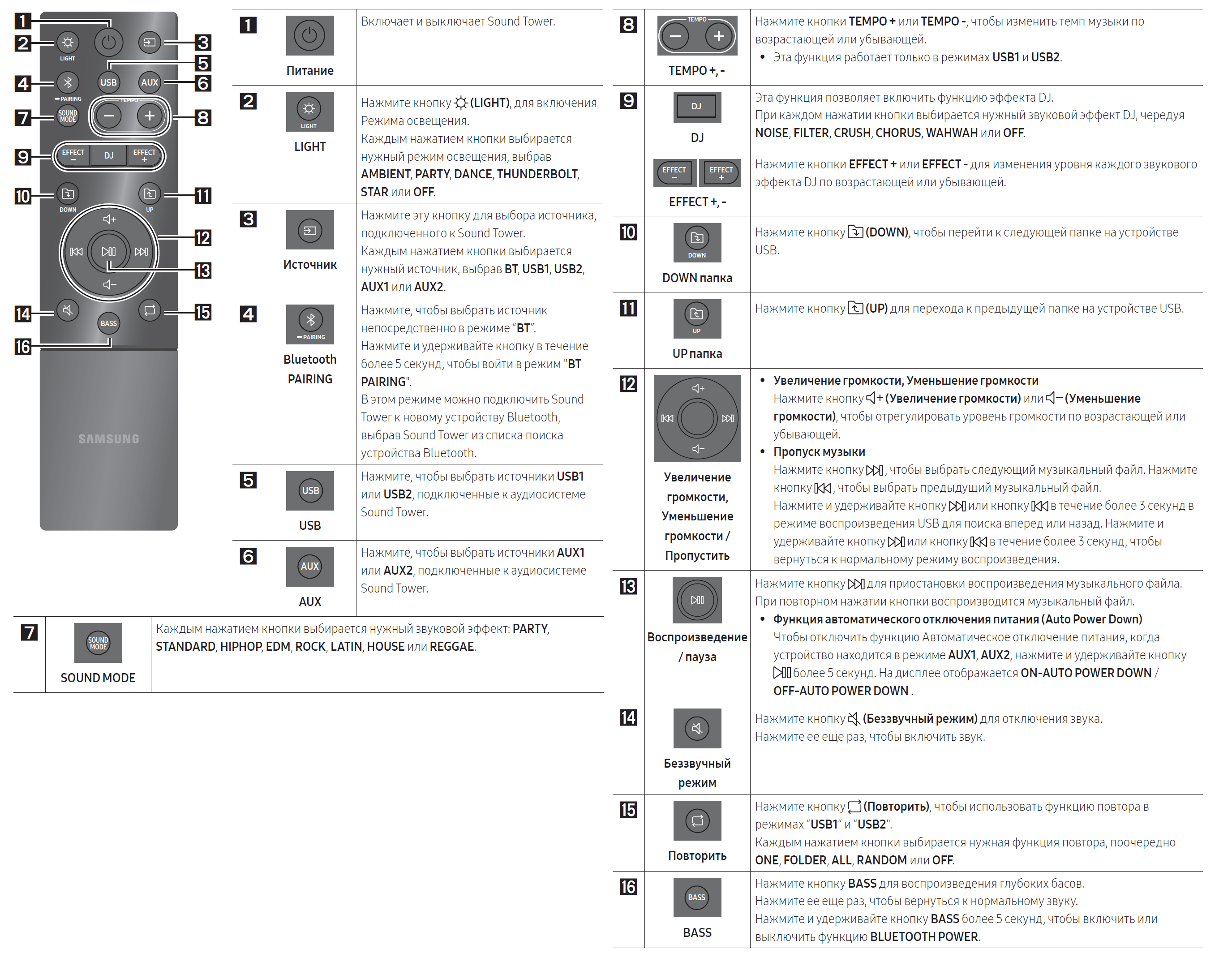Ну и раз уж заговорили об игрушках. В аудиосистему встроен ряд звуковых эффектов, чем-то напоминающих те, что используются в профессиональном DJ-оборудовании. В работе диджеев они используются для придания интересной окраски звучащим трекам, а также более гладкого сведения. В Samsung Sound Tower даже базовых возможностей для сведения нет, а вот эффекты есть. Ну а почему бы и нет, помешать они точно не в силах. Но все-таки это просто игрушка, а вот встроенные пресеты эквалайзера — уже весьма важная и интересная функция. Всего их восемь: Party, Standard, Hip-Hop, EDM, Rock, Latin, House и Reggae. А от том, как их смена влияет на звук, мы поговорим в следующей главе.