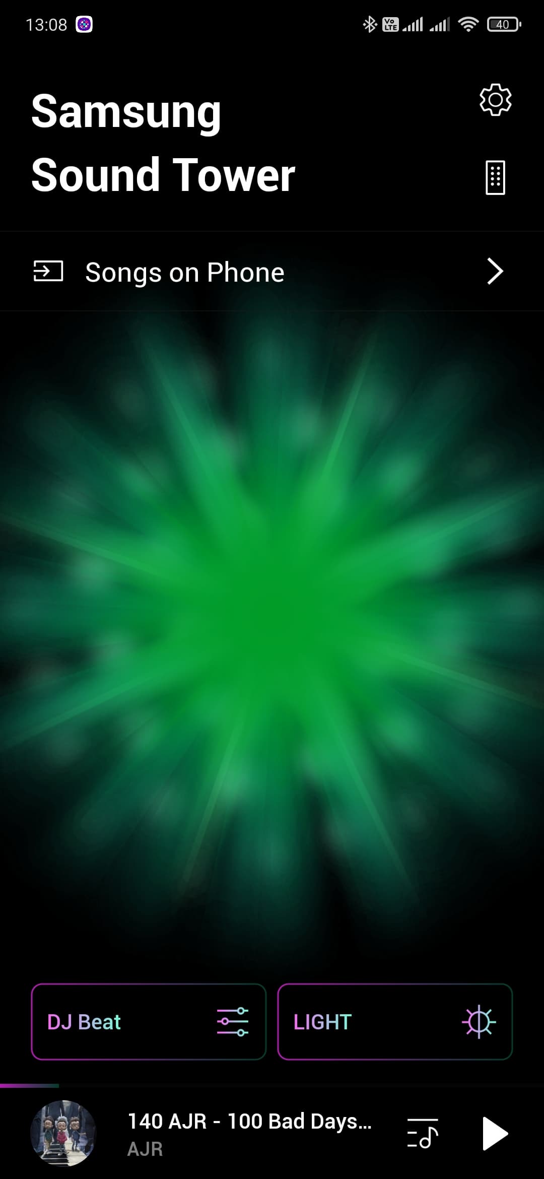 Громкости вполне достаточно для домашней вечеринки. Но если сравнивать Samsung Sound Tower MX-T50 с профессиональной концертной акустикой в пластиковом корпусе с такой же заявленной мощностью — разница будет очевидна и далеко не в пользу героини сегодняшнего теста. Зато двунаправленная система динамиков оказалась очень хорошей идеей — аудиосистема прекрасно заполняет звуком пространство. По умолчанию активируется пресет эквалайзера Party — с него и начнем, использовать для начала будем беспроводное соединение как потенциально самое востребованное.