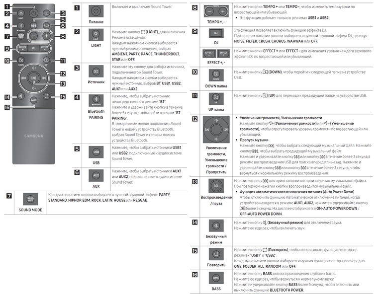 | Режимы звучания | Party, Standard, Hip-Hop, EDM, Rock, Latin, House, Reggae |
