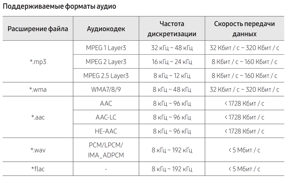 Встроенный плеер может воспроизводить музыкальные файлы с USB-накопителей, отформатированных в файловых системах FAT и FAT32. При этом поддерживаются все основные форматы аудио — специально что-то перекодировать не придется. Таблицу ниже мы взяли из инструкции, но на всякий случай проверили — да, все указанные файлы корректно воспроизводятся. А еще в режиме воспроизведения с USB-носителей работает возможность регулировки темпа воспроизведения трека, которая может пригодиться при пении караоке, например.
