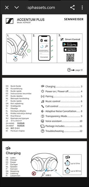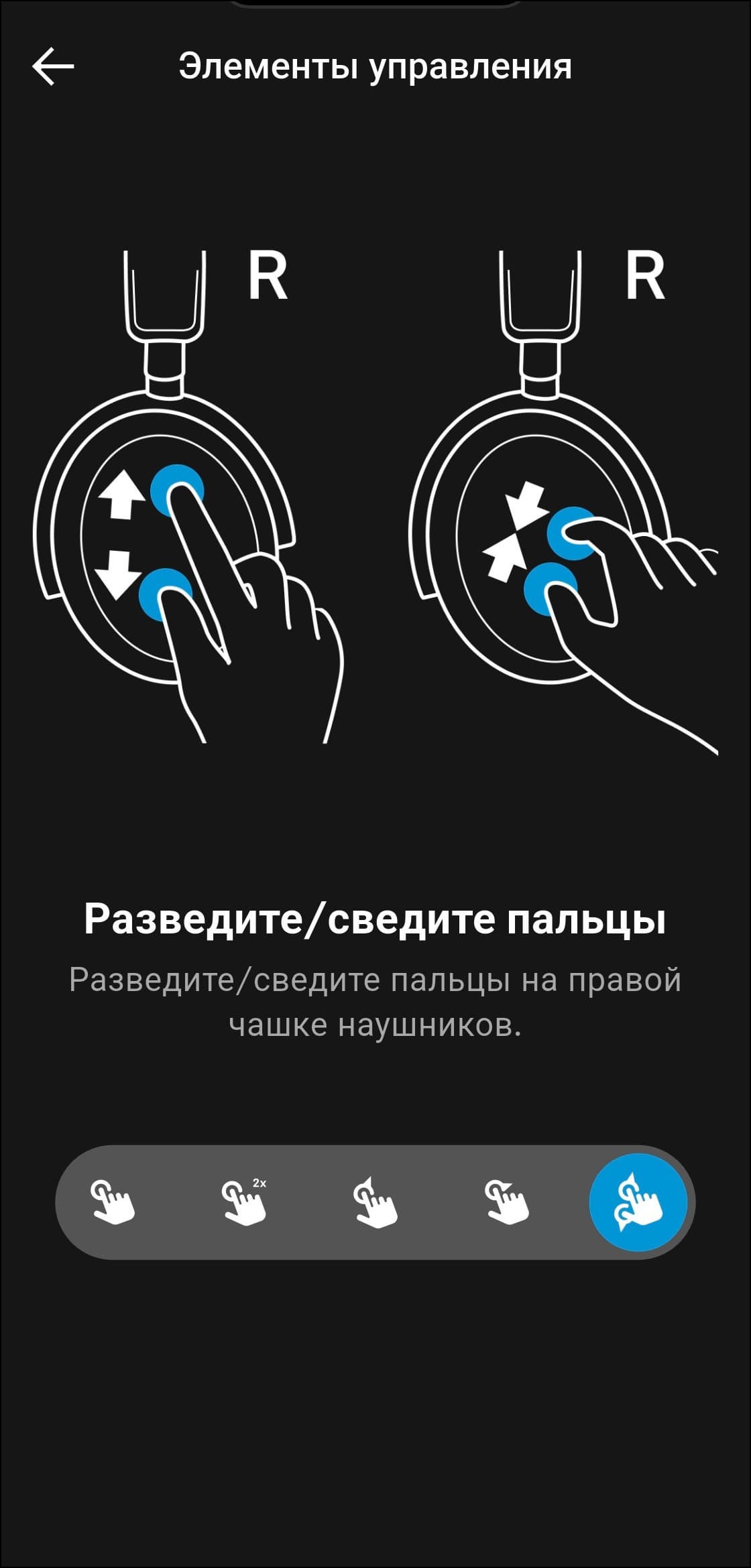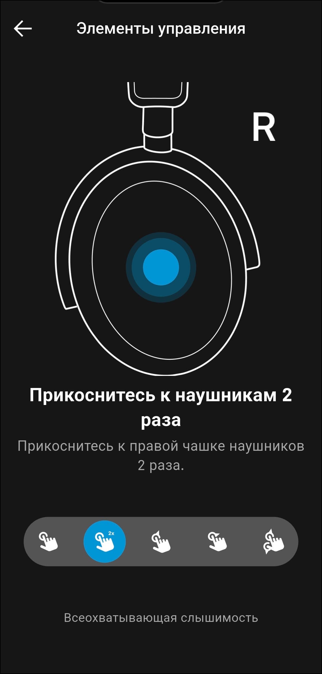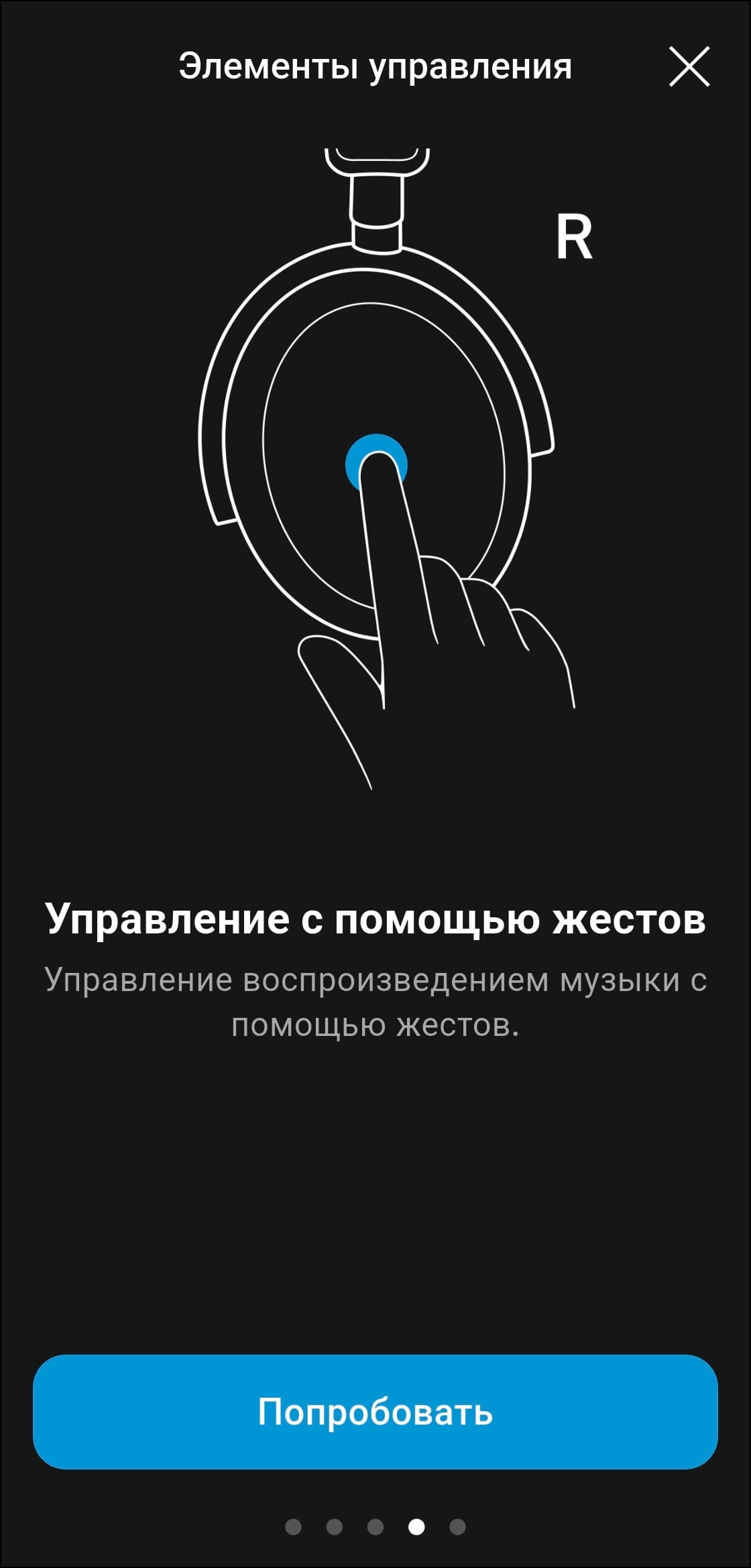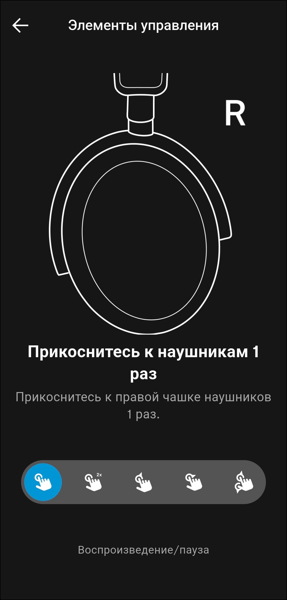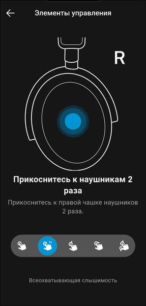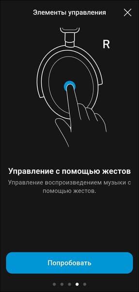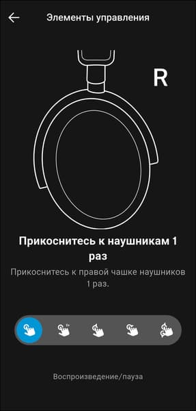 Как уже упоминалось выше, для управления Sennheiser Accentum Plus используется крупная сенсорная панель с поддержкой жестов, расположенная на внешней стороне правой чашки. Профиль управления логичный и в целом интуитивно понятный, но ознакомиться с инструкцией, которую предлагает приложение, все же не помешает.