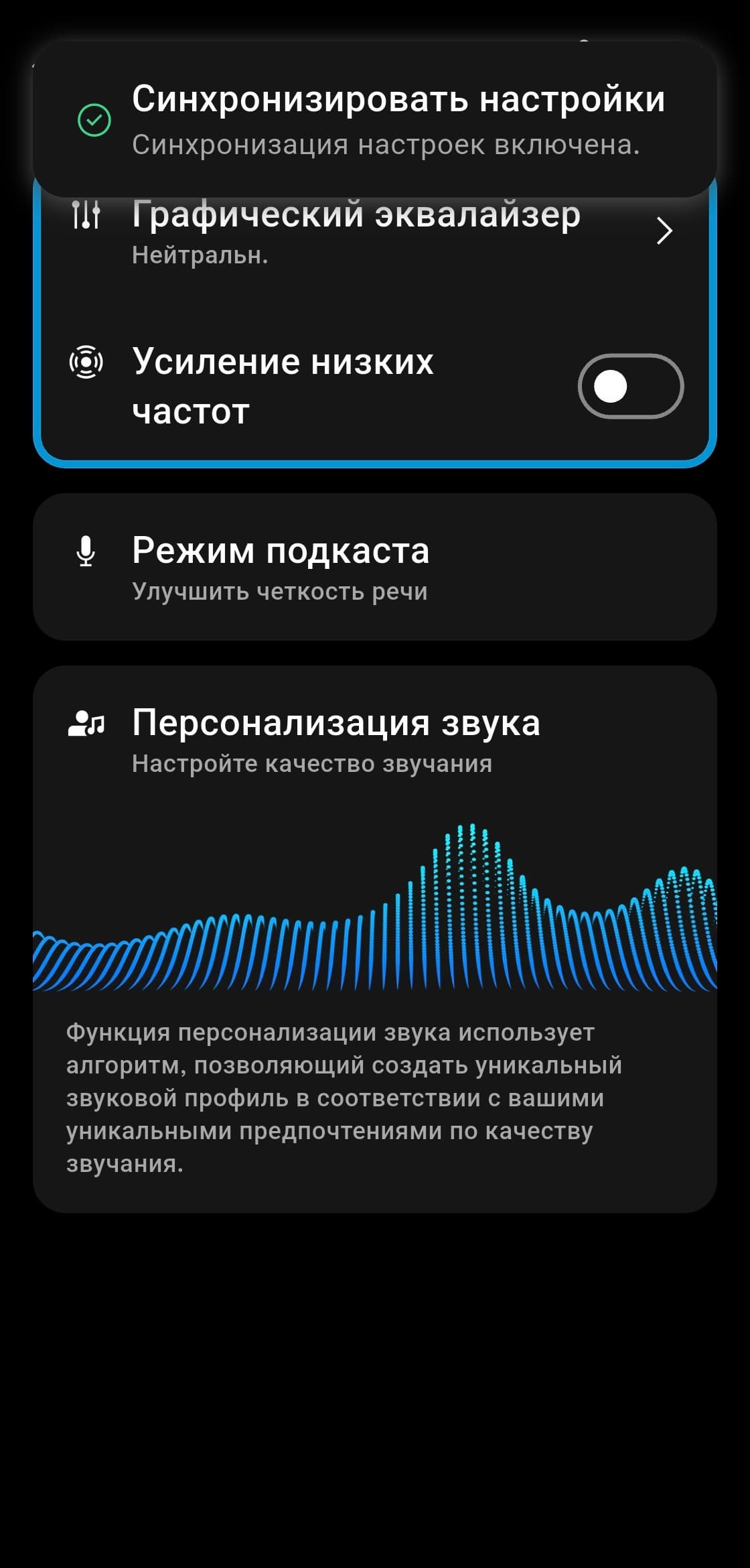 Опция «Усиление НЧ» делает басы еще более выраженными — настолько, что по-настоящему оценить ее смогут разве что истинные бассхеды.
