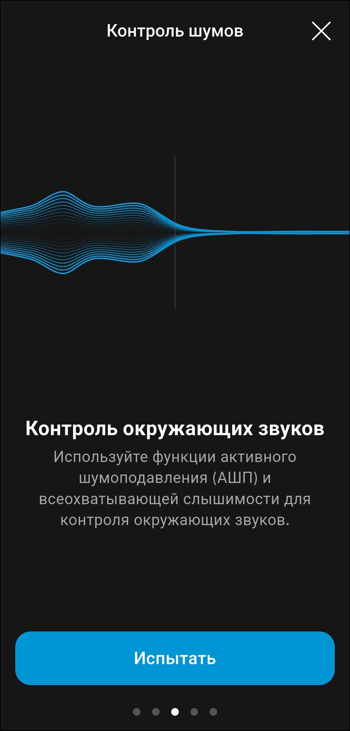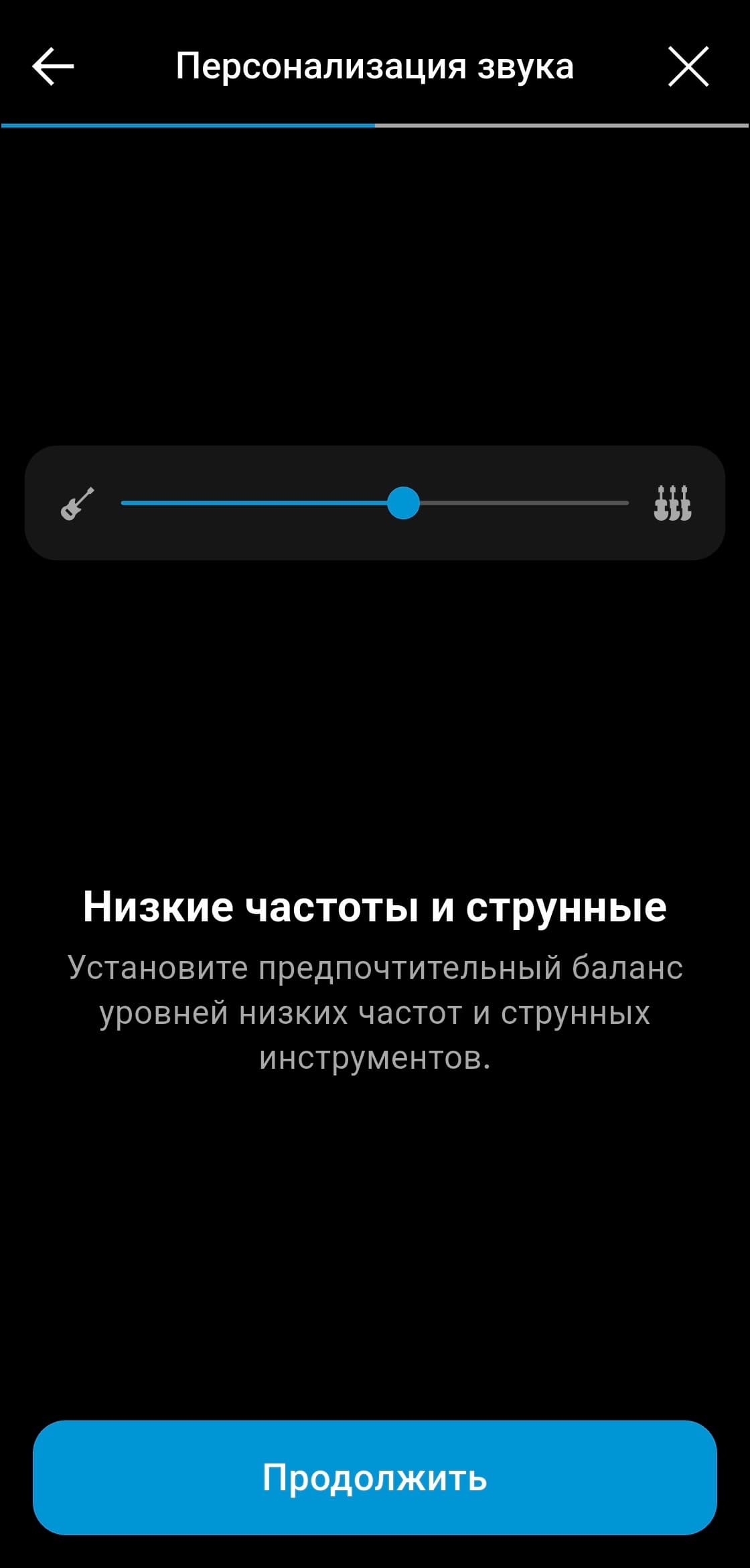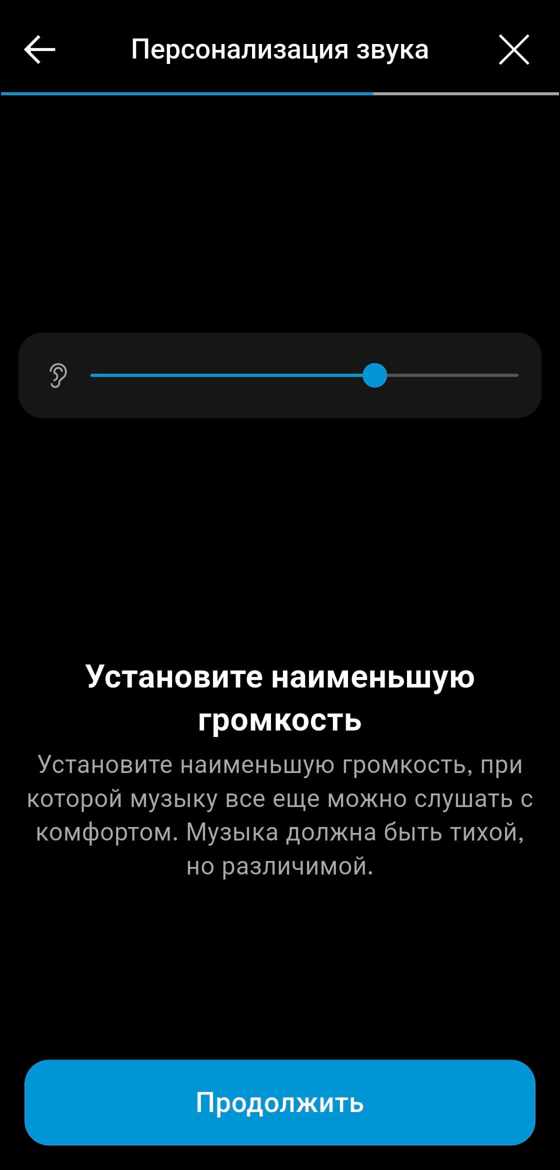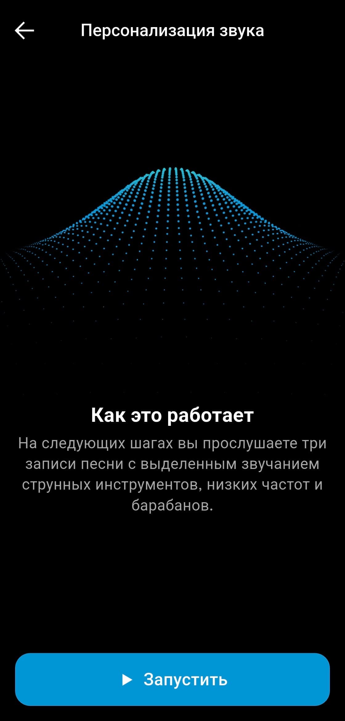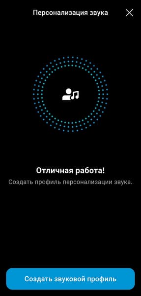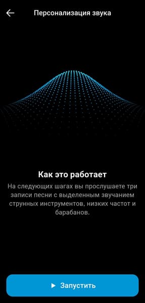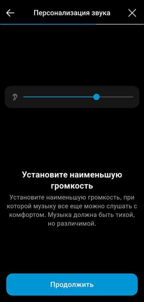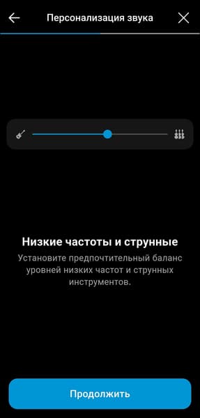 Персонализация под особенности слуха и вкусы владельца наушников в приложении предусмотрена, но реализована довольно оригинальным образом. Сначала предлагается прослушать короткие музыкальные фрагменты с разными инструментами и настроить предпочтительный баланс громкости между ними. После нескольких повторов формируется индивидуальный профиль звучания. Метод в целом работает неплохо и подходит даже тем, у кого нет опыта в настройке звука. Но все же полноценный эквалайзер, хорошо знакомый музыкальный материал и немного усидчивости способны дать куда более впечатляющий результат.