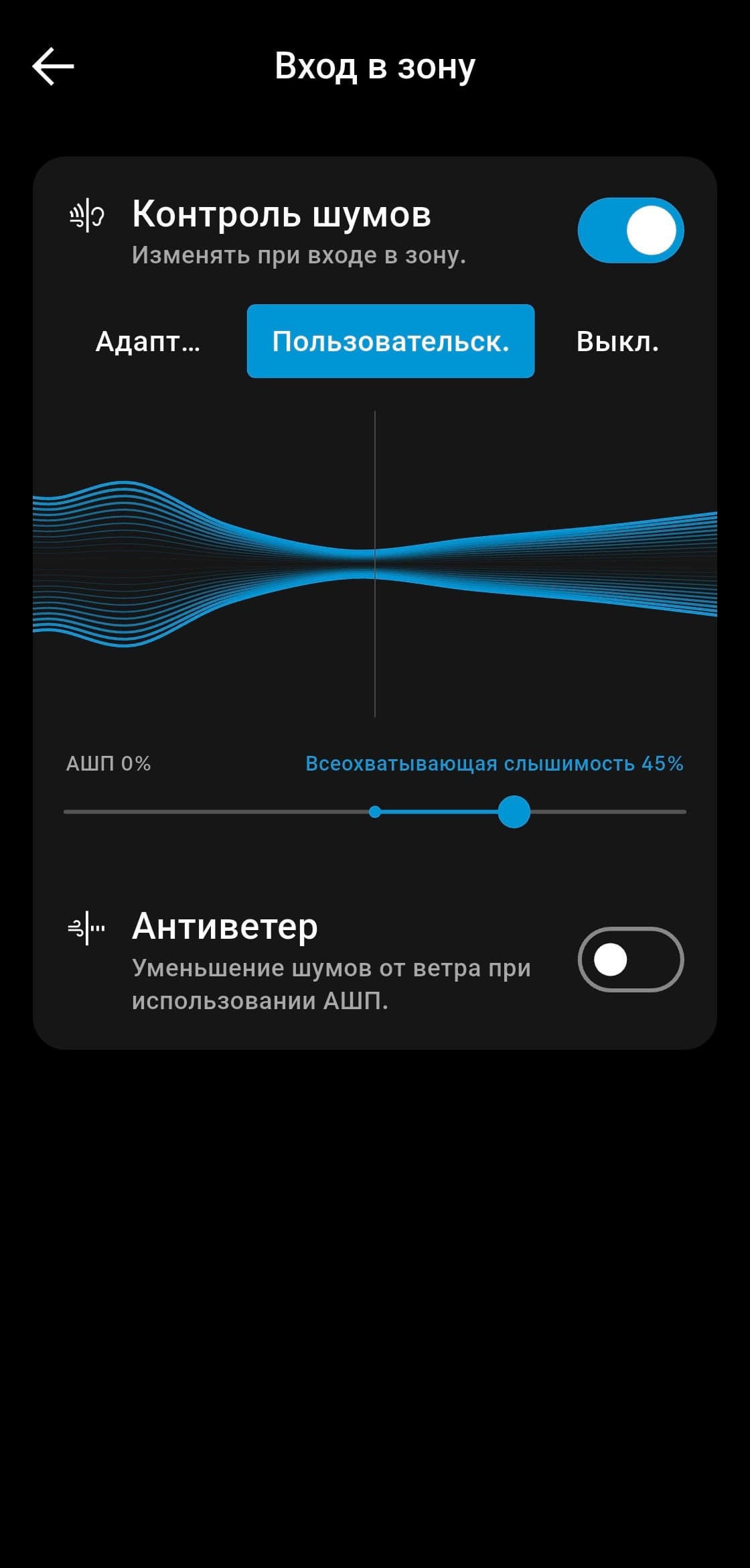 Адаптивный режим работает без заметных задержек: переходы между уровнями шумоподавления происходят плавно и достаточно быстро для комфортного использования. Неприятное чувство «давления в голове» возникает при максимальной активности системы — к счастью, постоянно использовать ее в этом режиме нет никакой необходимости. Управление шумоподавлением остается довольно своеобразным: привыкание к его логике даже после недавних обновлений может занять некоторое время, но адаптивный режим работает настолько стабильно, что в большинстве случаев ручное вмешательство просто не требуется.