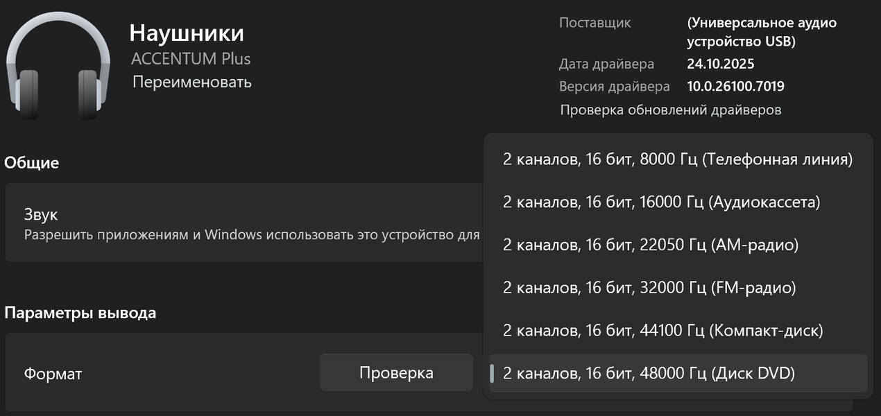 При подключении по USB наушники определяются как аудиоустройство и поддерживают режимы вплоть до 16 бит / 48 кГц. В ходе тестов мы использовали их с ПК на Windows и смартфоном под Android — в обоих случаях все корректно работало.