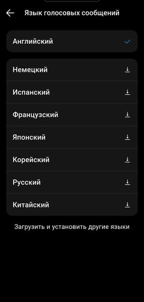 В настройках также можно включить отключение питания при длительном простое. Кроме того, доступны дополнительные пакеты голосовых уведомлений о состоянии гарнитуры — среди них есть и русскоязычный вариант, что приятно.