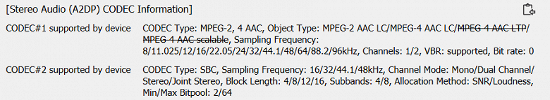 Помимо проводного подключения, конечно же, присутствует и беспроводное. Во-первых, поддерживается Google Chromecast — соответственно, можно «стримить» контент из множества приложений: от «Яндекс.Музыки» до Tidal. Во-вторых, есть Spotify Connect. Ну и, конечно, Bluetooth. Версия не самая новая, но и устройство вышло не вчера, да и в данном случае это не критично. Список поддерживаемых кодеков и их режимов мы традиционно получили с помощью утилиты Bluetooth Tweaker.