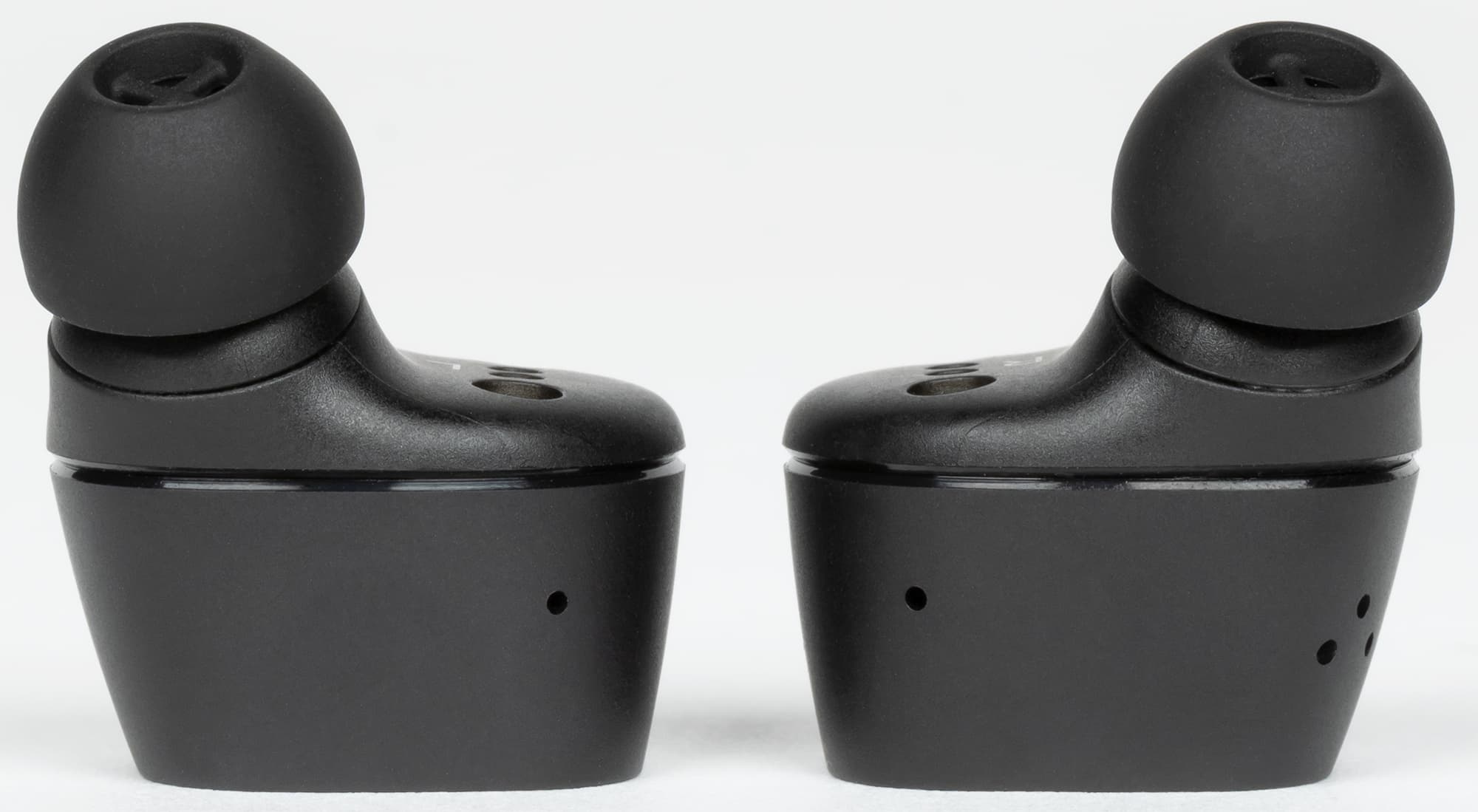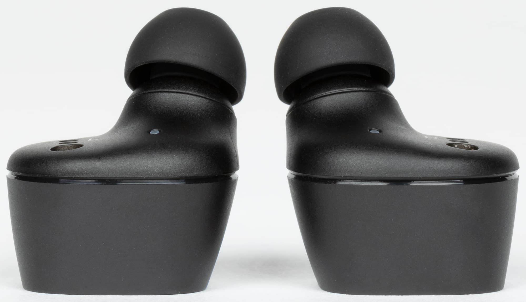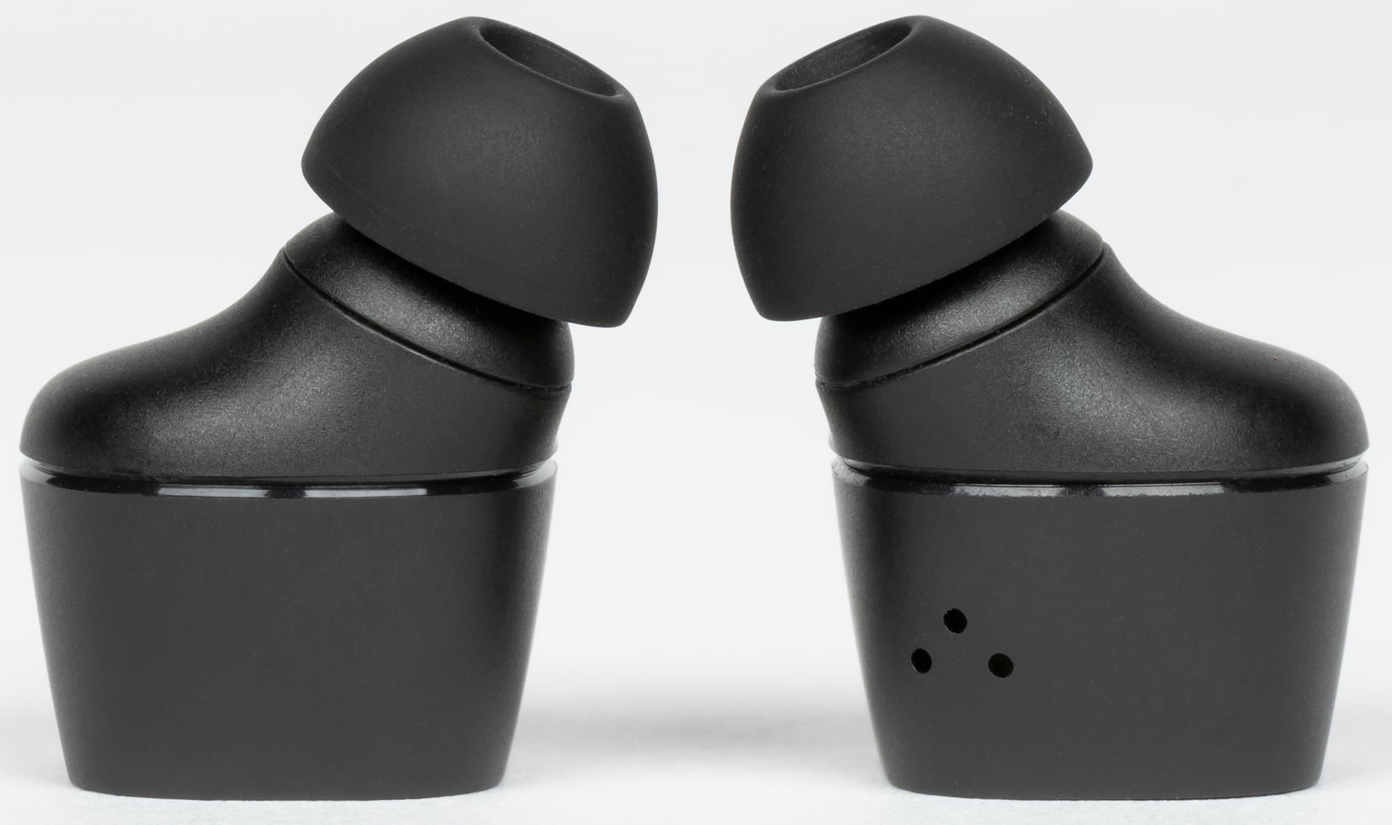 Лучше сориентироваться в расположении отверстий можно посмотрев на наушники сбоку. Также с этого ракурса хорошо видно, что звуковод не очень длинный и выходит из корпуса под углом.