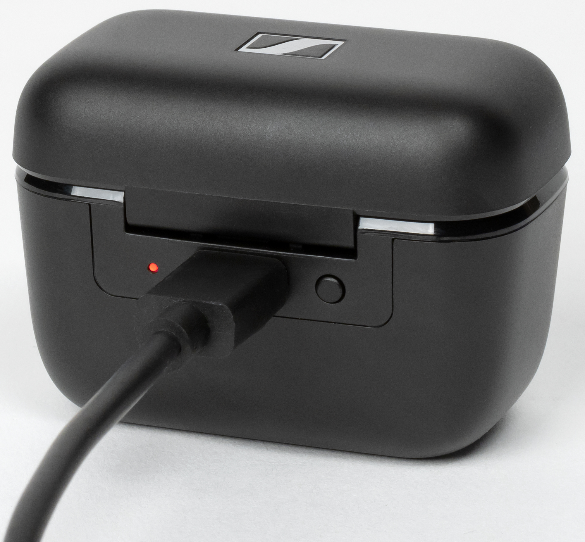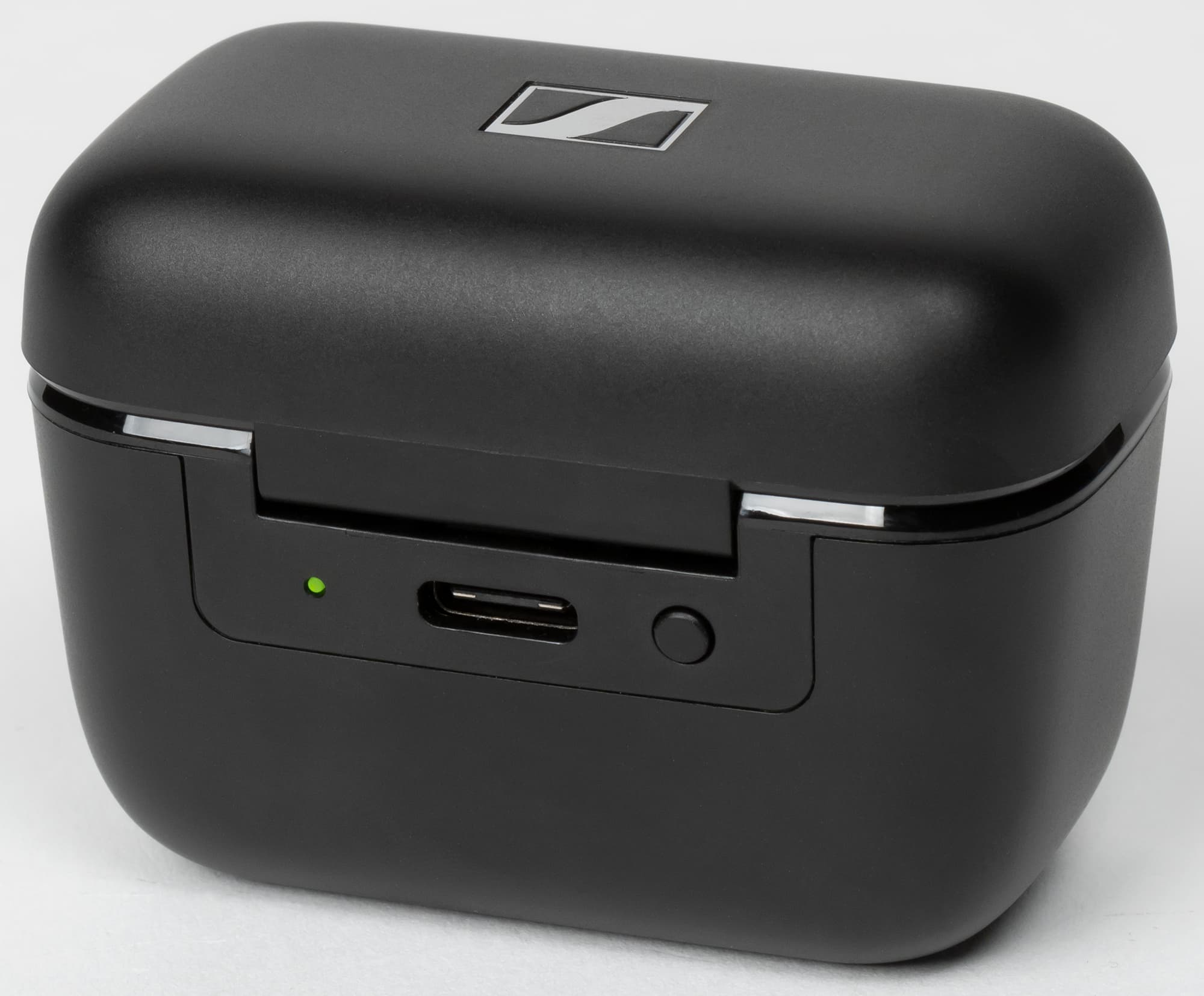 Поставляется гарнитура в традиционной для большинства продуктов Sennheiser упаковке из картона, оформленной в бело-синей гамме. Ее внешний вид знаком нам, в частности, по Momentum True Wireless 2. На лицевую сторону нанесены изображение устройства и логотип производителя, на остальные — краткие характеристики и небольшая инструкция. Внутри внешней коробки находится еще одна из плотного белого картона, где в пластиковый ложемент уложены наушники и кейс для них.